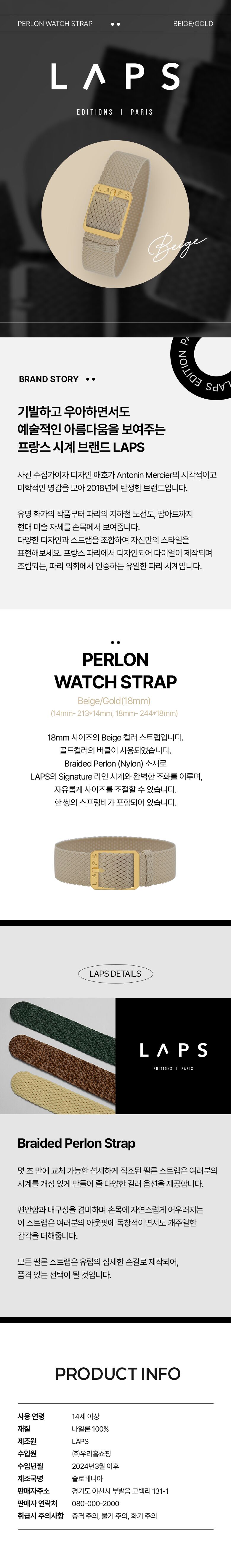 [랩스]시그니처 풀라 스타일(올리브 스트랩) + 18mm 베이지 골드 스트랩