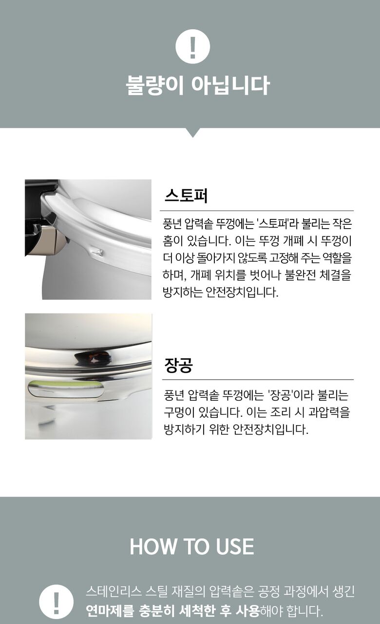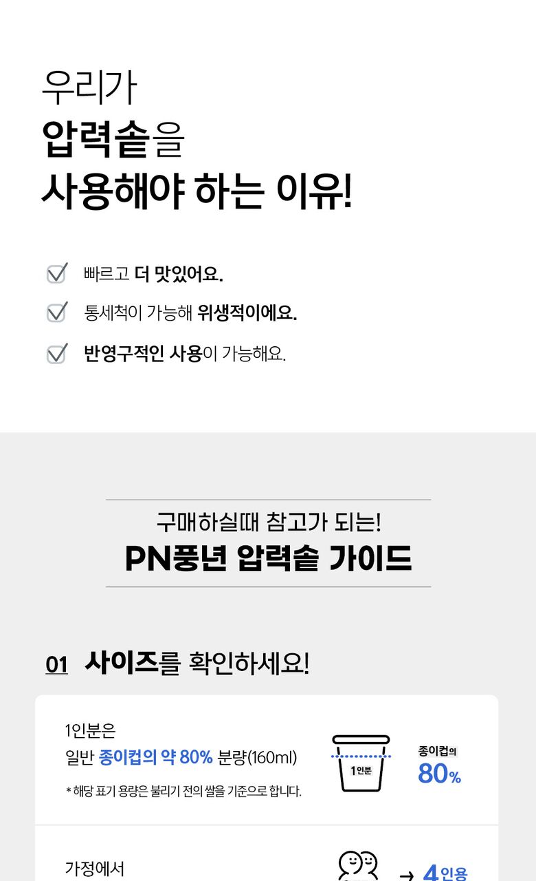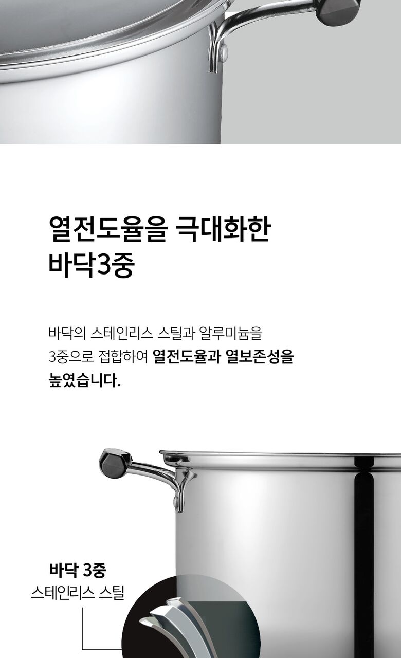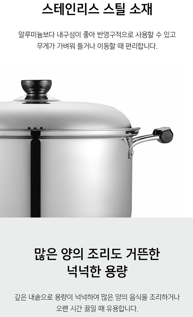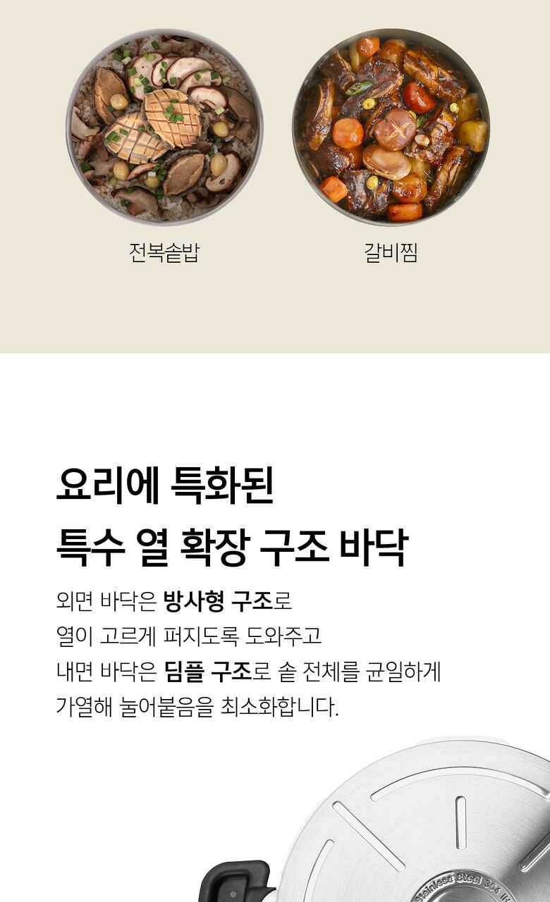 | 재질 | 압력솥 : 금속제(알루미늄, 스테인리스 스틸), 곰솥 : 금속제(스테인리스 스틸) |