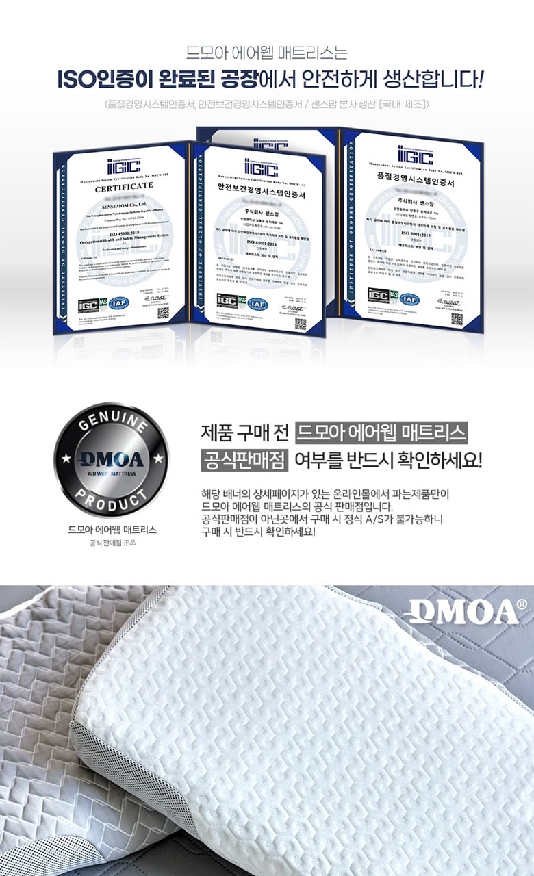 | 제조자 / 수입여부 | 센스맘 / 충전재 제조사 : (주)센스맘 / 한국겉커버/속커버 제조사 : 센스맘OEM / 중국 |
