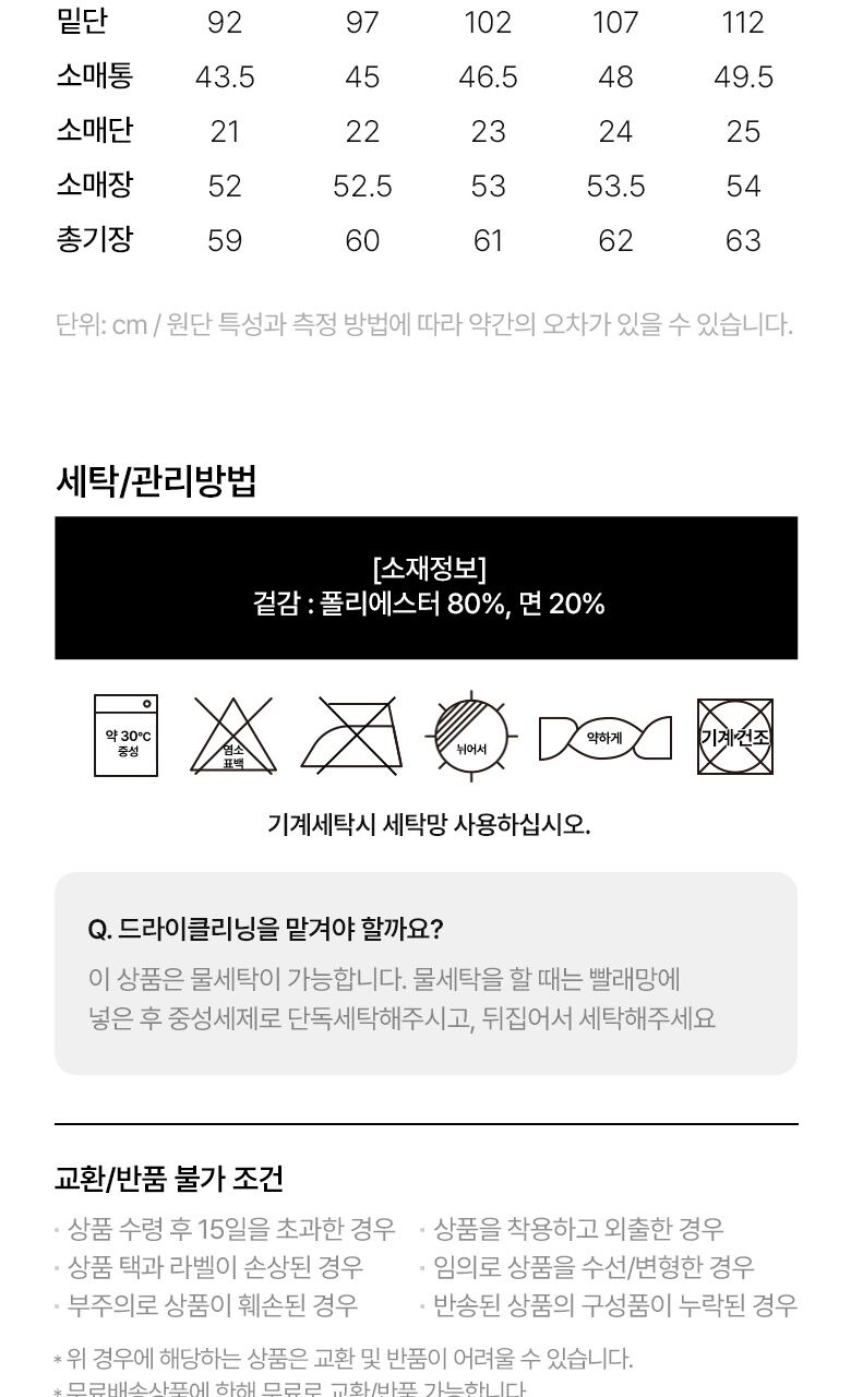 | 세탁방법, 취급시 주의사항 | 기계 세탁 가능 |