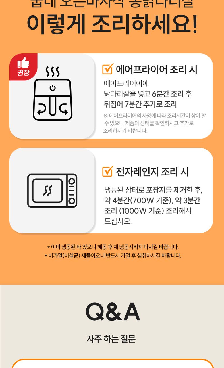| 소비자안전을 위한 주의사항 | -이 제품은 알류,메밀,땅콩,고등어,게,새우,돼지고기,복숭아, 아황산류, 호두, 오징어, 조개류(전복,홍합 포함), 잣을 사용한 제품과 같은 제조시설에서 제조하고 있습니다. -이미 냉동된 바 있으니 해동 후 재냉동하지 마세요. -뼈가 있을 수 있는 제품이므로 치아가 손상되거나 목에 걸리지 않게 주의하십시오. -본 제품은 소비자분쟁해결기준에 의거 교환 또는 보상받을 수 있습니다. -부정,불량 식품 신고는 국번없이 1399 |