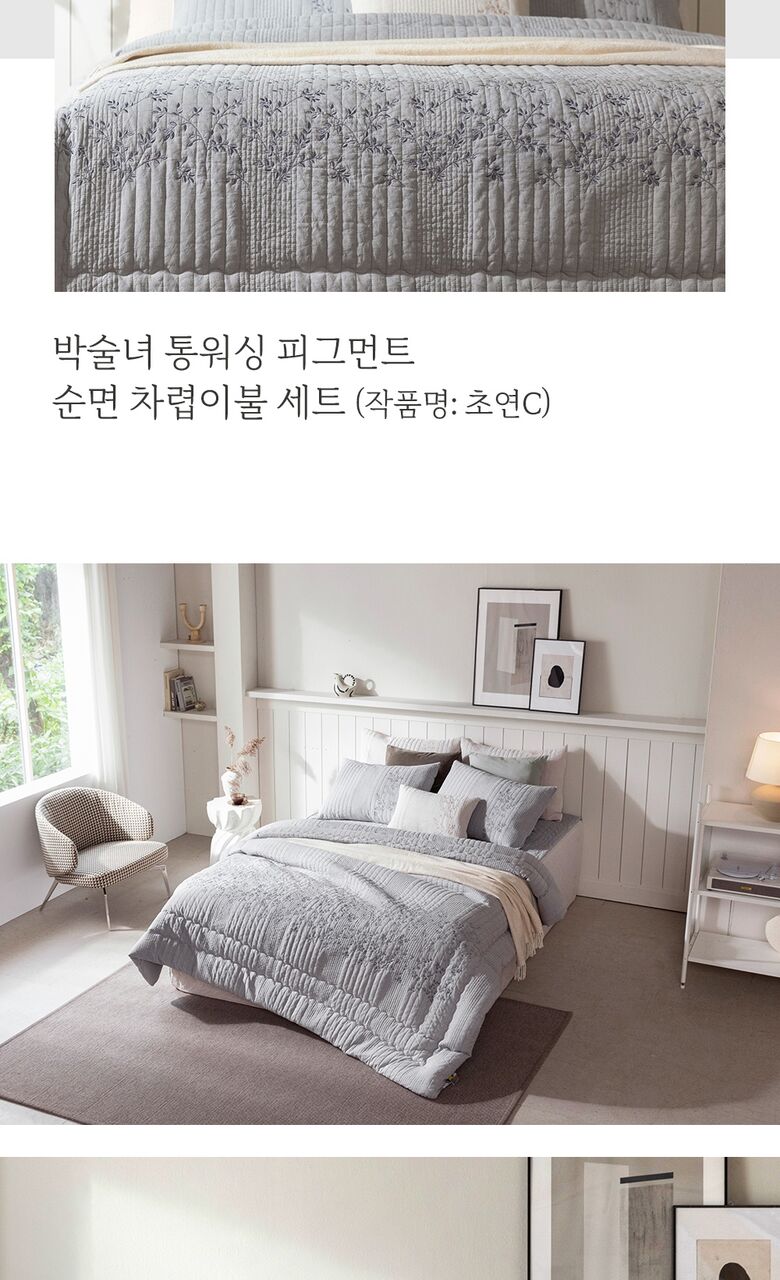 [박술녀][OneTV][Q]순면100 피그먼트 워싱 자수 침구 풀세트_초연2(初緣)