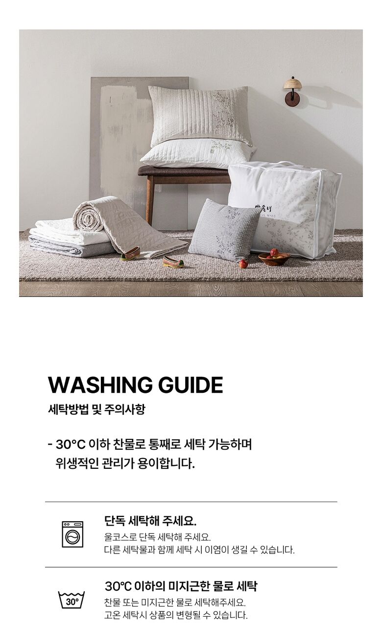 4. 건조기 또는 세탁기의 건조코스는 제품의 손상 및 변질의 우려가 있으므로 주의하시길 바랍니다.
