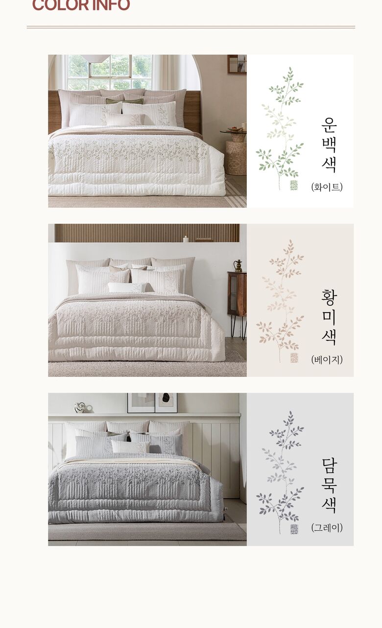 | 색상 | 운백색(화이트), 황미색(베이지),담묵색(그레이) |