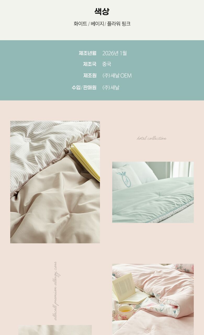 | 제품구성 | 이불1,토퍼1,베개커버2, 베개솜1 |