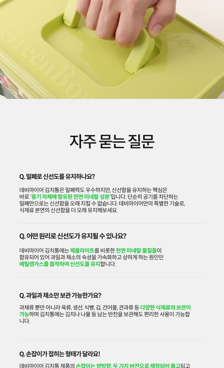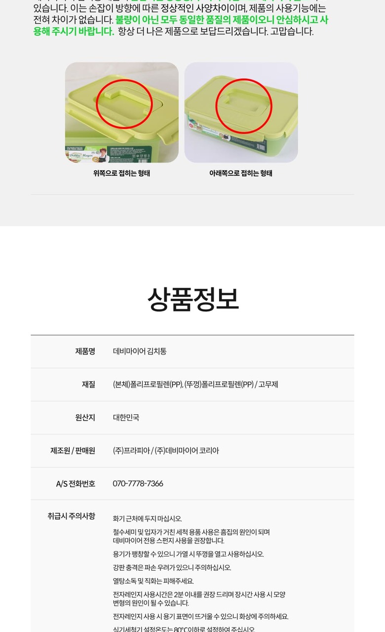 | 크기 | 김치통 5.1L: (W)260 * (D)185 * (H)150 mm |
