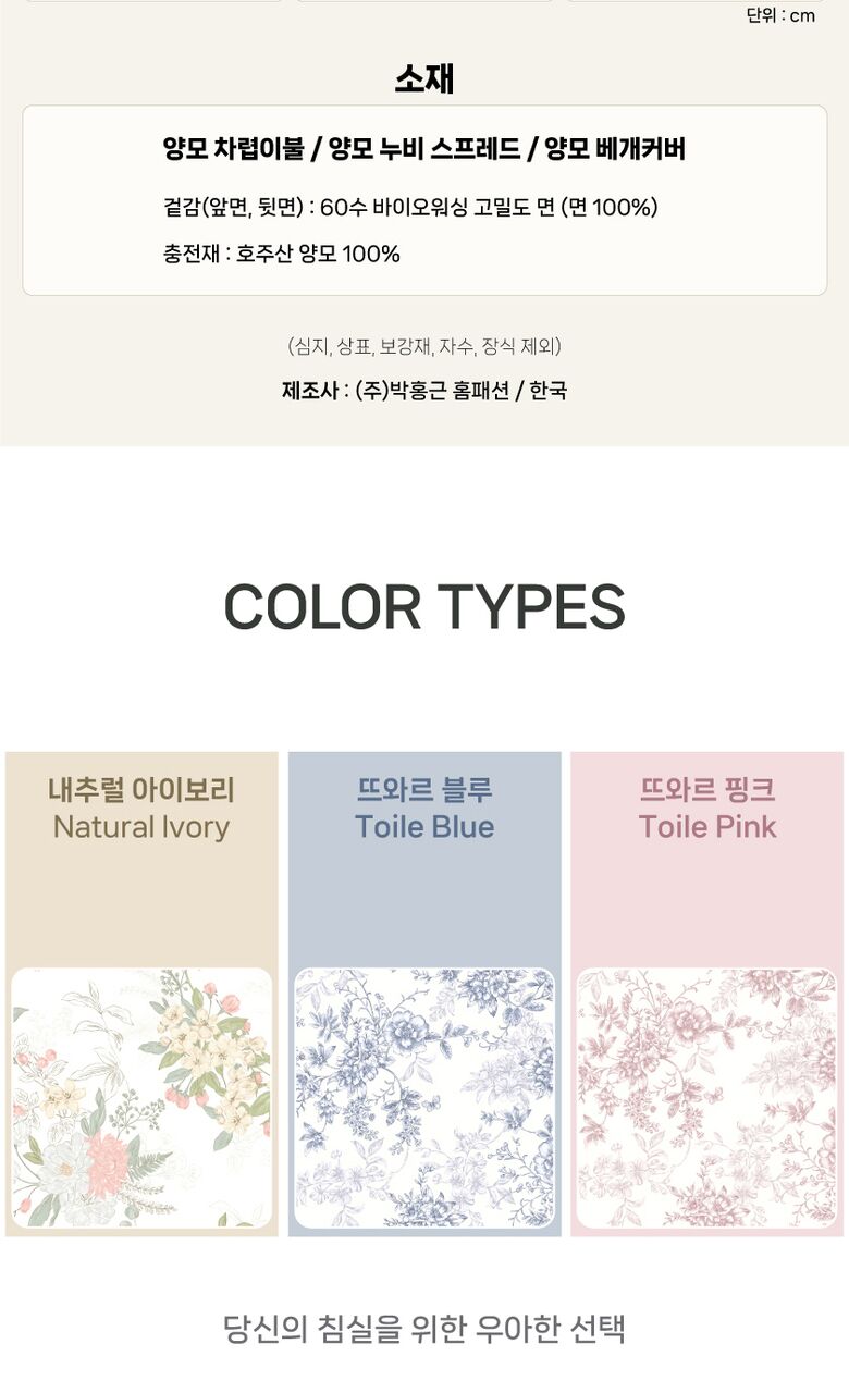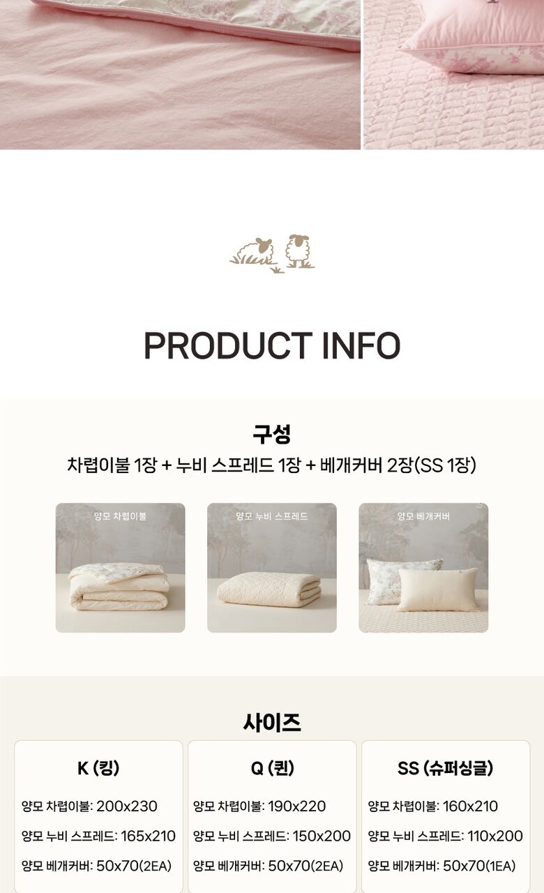 | 제품구성 | 양모 이불1, 패드겸 스프레드1, 양모 베개커버 1 |