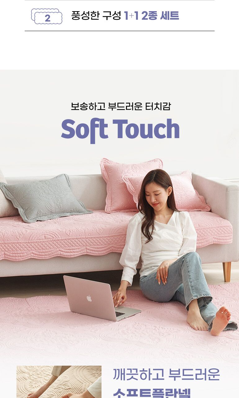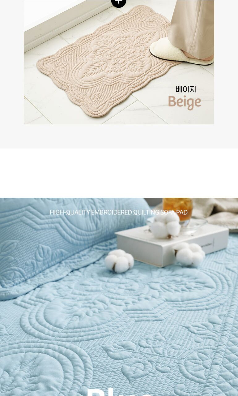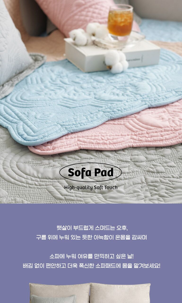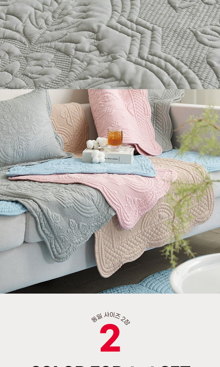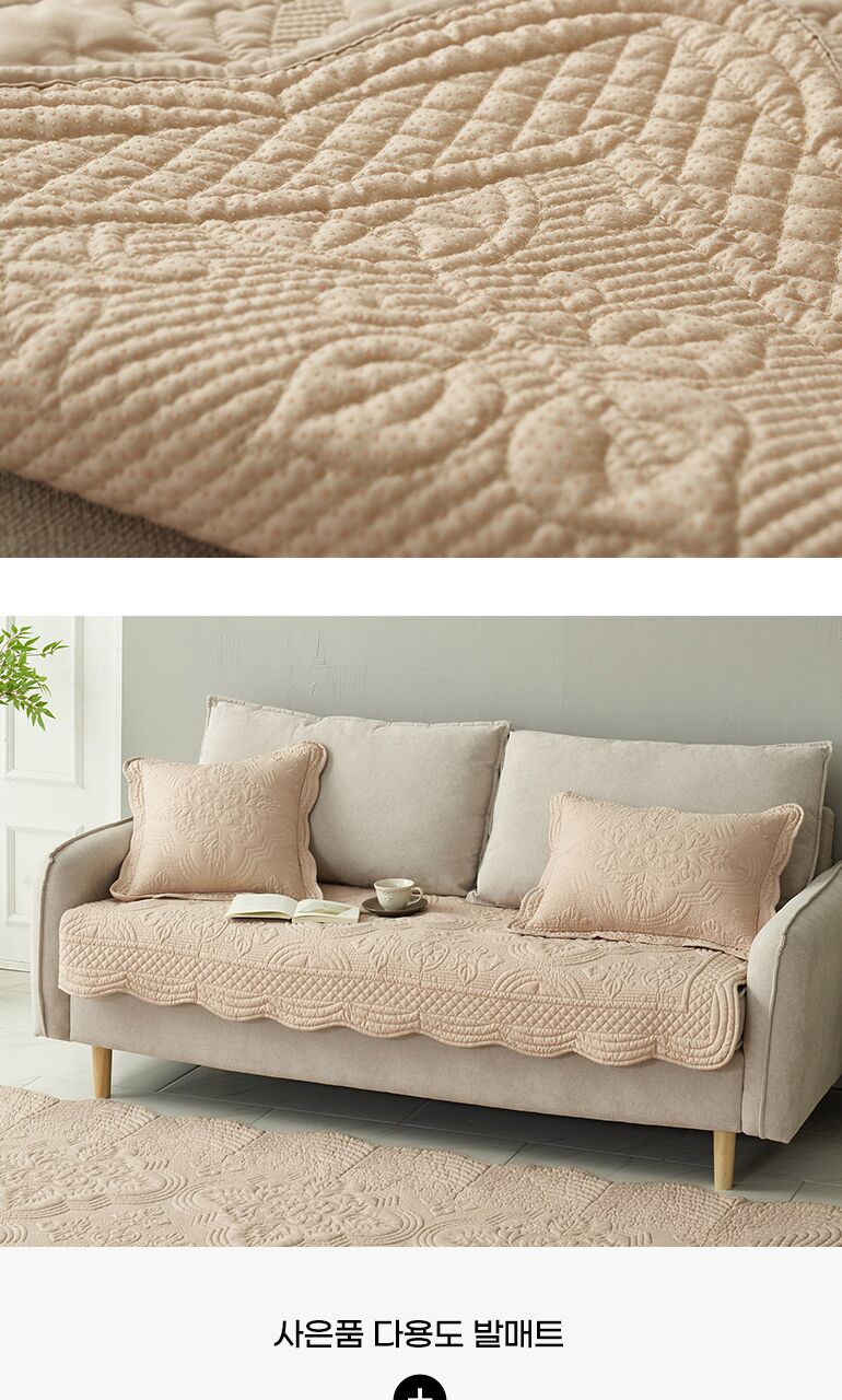 [루나앤슬립][3인용]목화솜 자수퀼팅 소파패드 2장+다용도 발매트