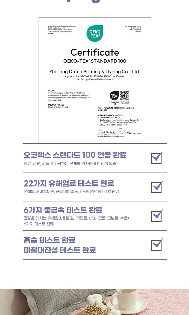 | 제품소재 | 겉감1,2: 폴리에스터 100%, 충전재: 면 96% 폴리에스터 4% |
