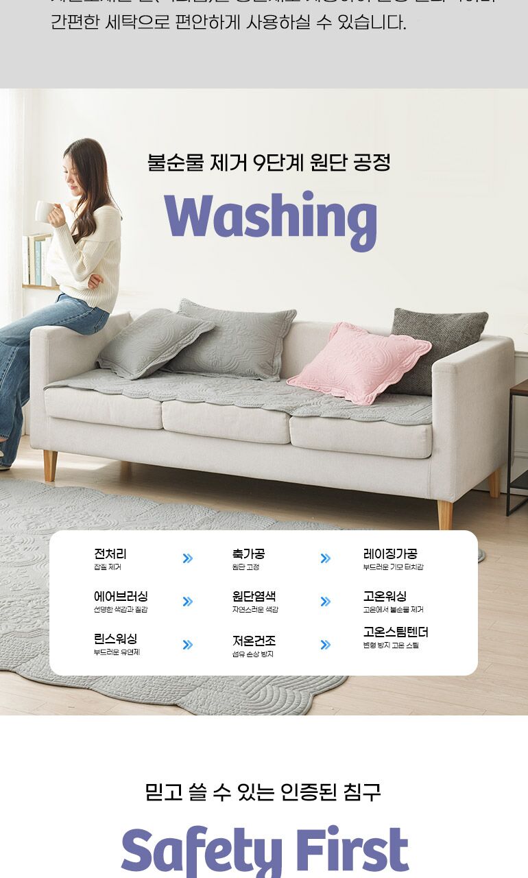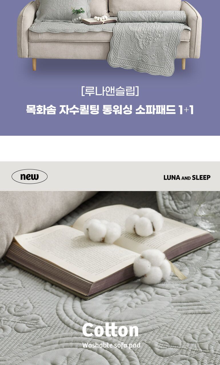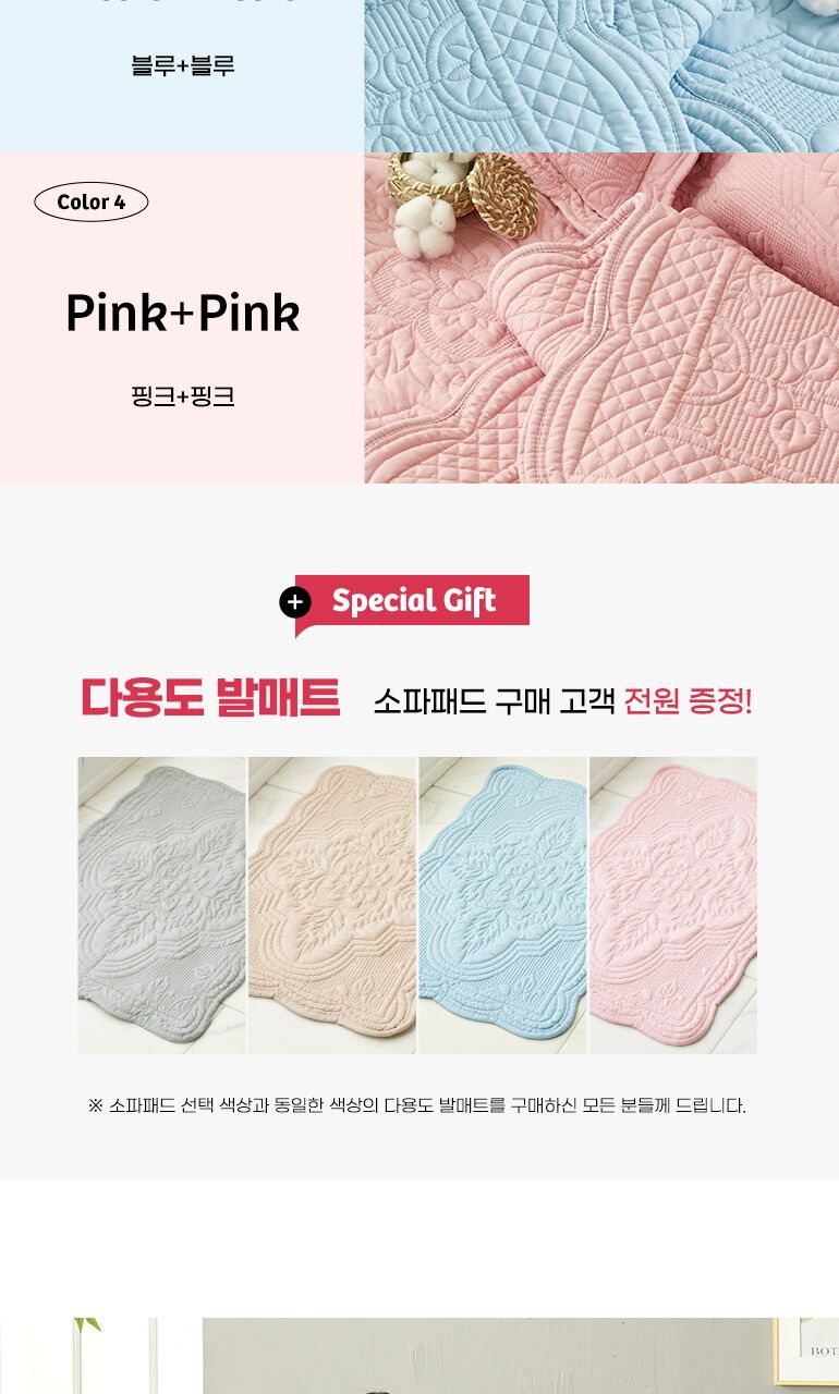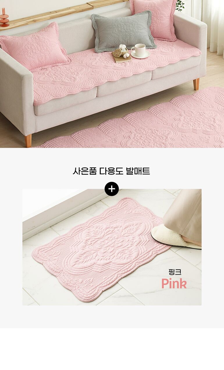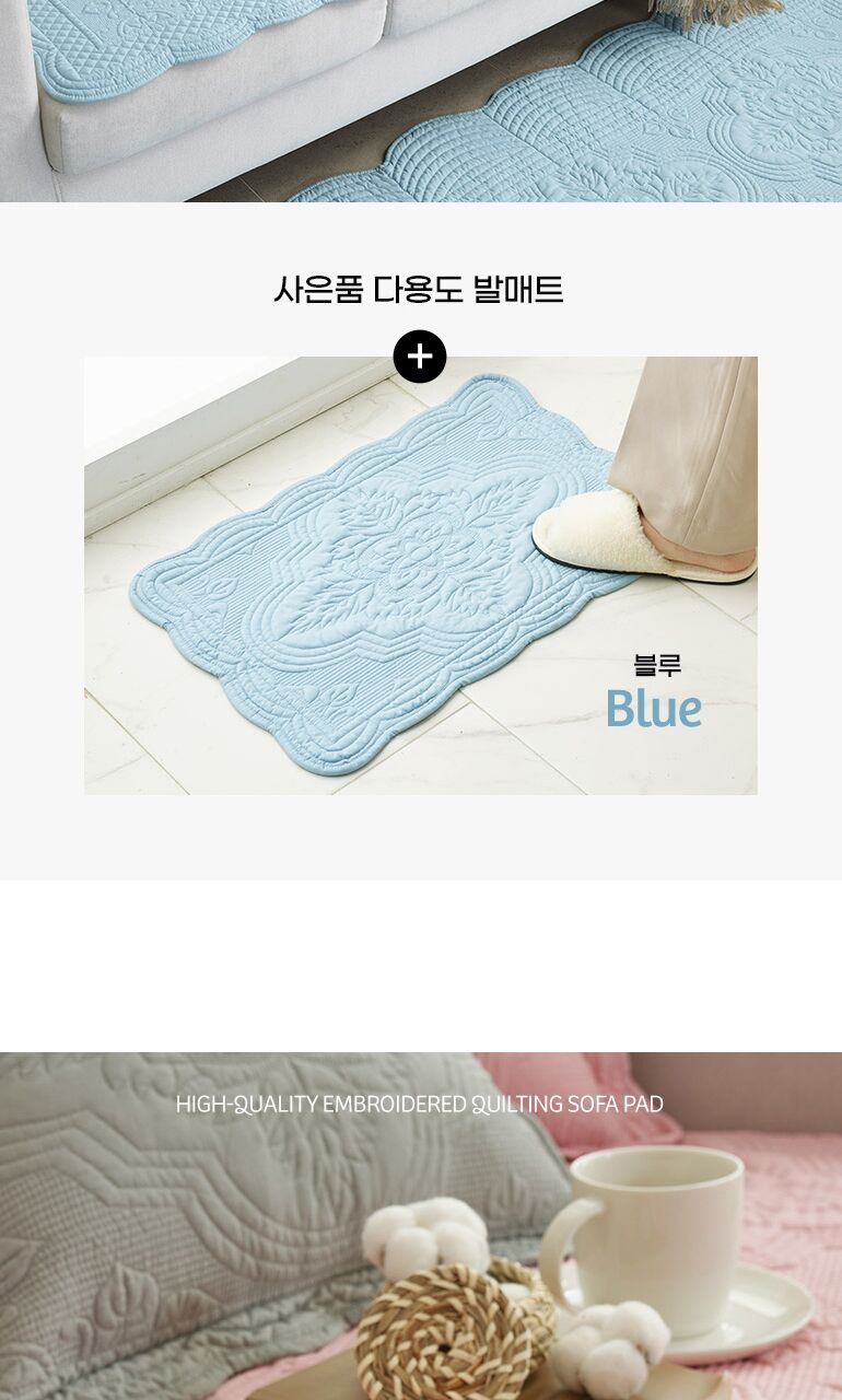 [루나앤슬립][4인용]목화솜 자수퀼팅 소파패드 2장+다용도 발매트