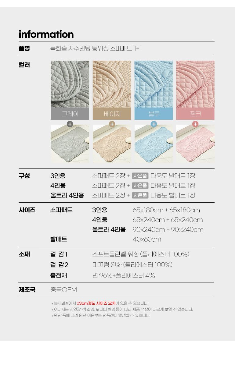 | 치수 | 소파패드 240*65 발매트 60*40 |