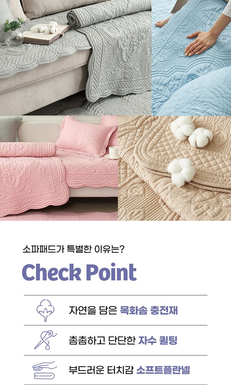 목화솜 자수퀼팅 소파패드