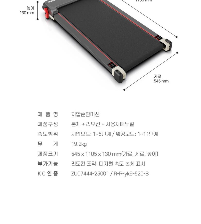 | 지압 워킹머신 | 545x1105x130mm / 1.2kg | 1 |