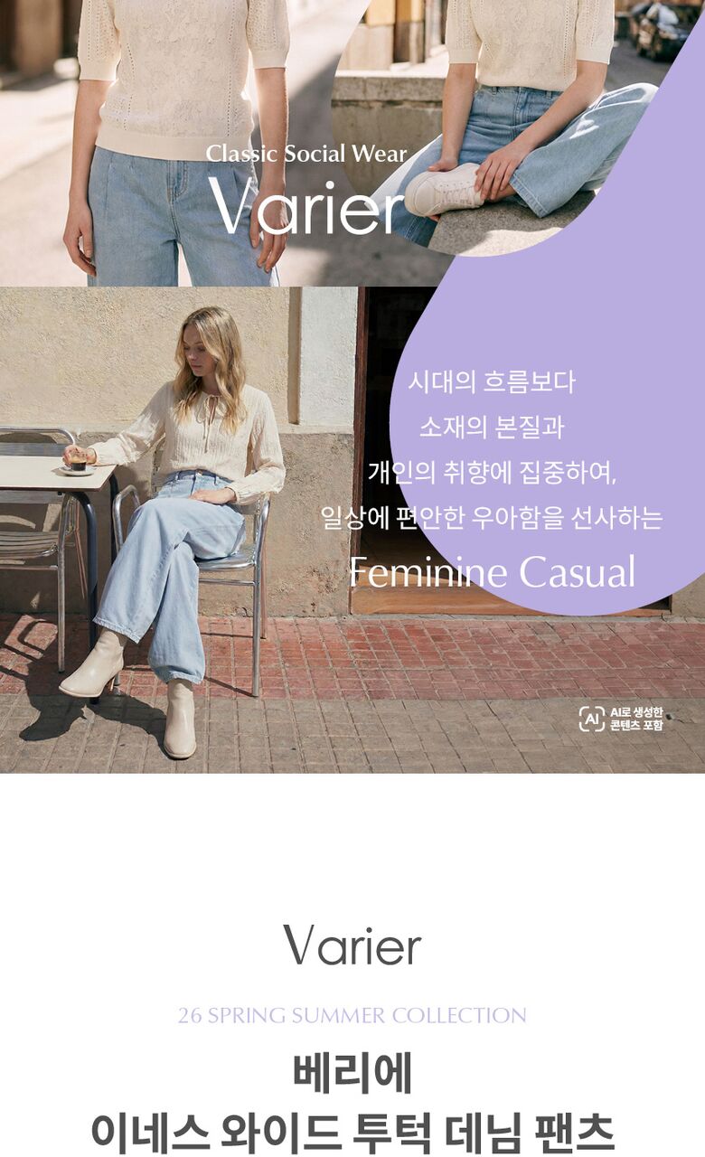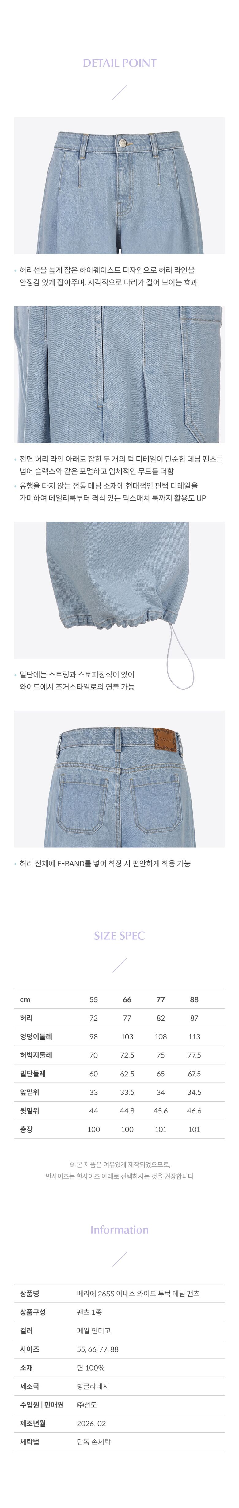 [베리에][런칭가:69,900원]○26SS 이네스 와이드 투턱 데님 팬츠