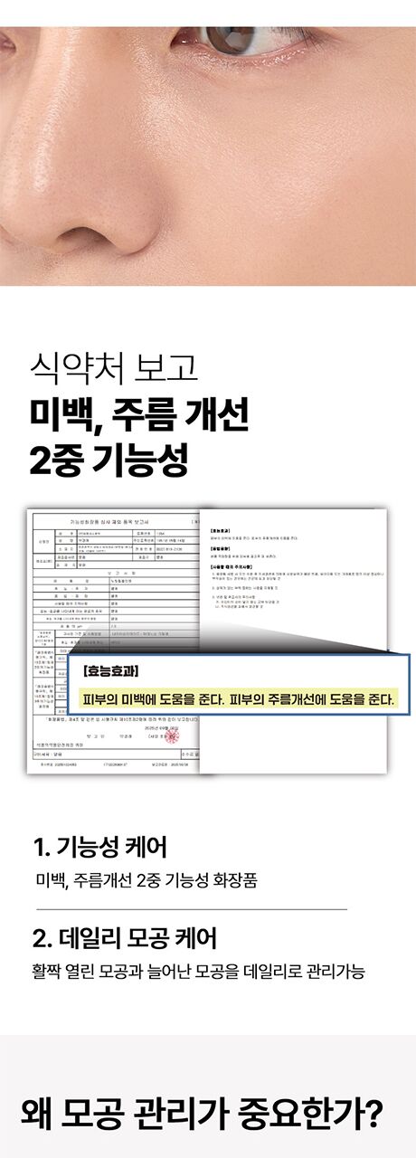 | 화장품법에 따른 기능성 화장품의 경우 화장품법에 따른 기능성 화장품 심사(또는 보고)를 필함의 문구 | 화장품법에 따른 기능성 화장품 심사(또는 보고)를 필함. 미백 및 주름 개선 기능성 화장품 |