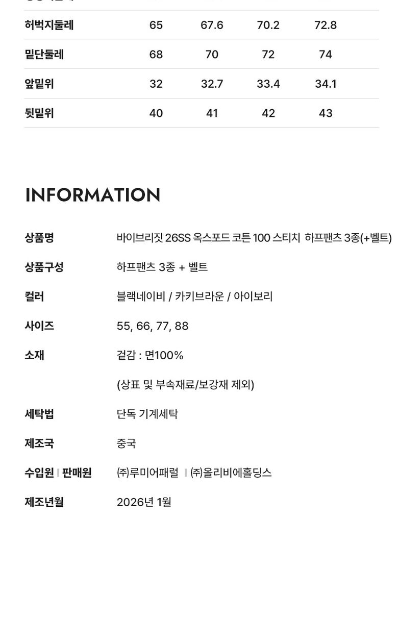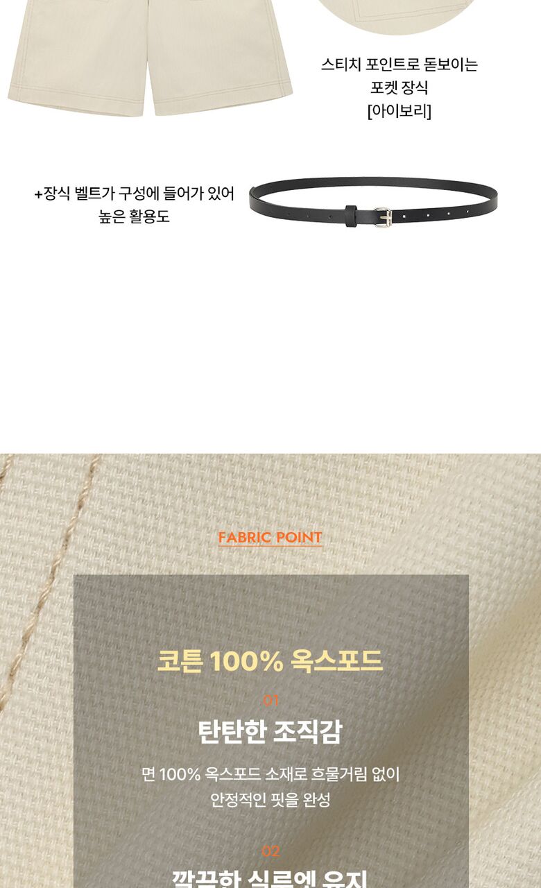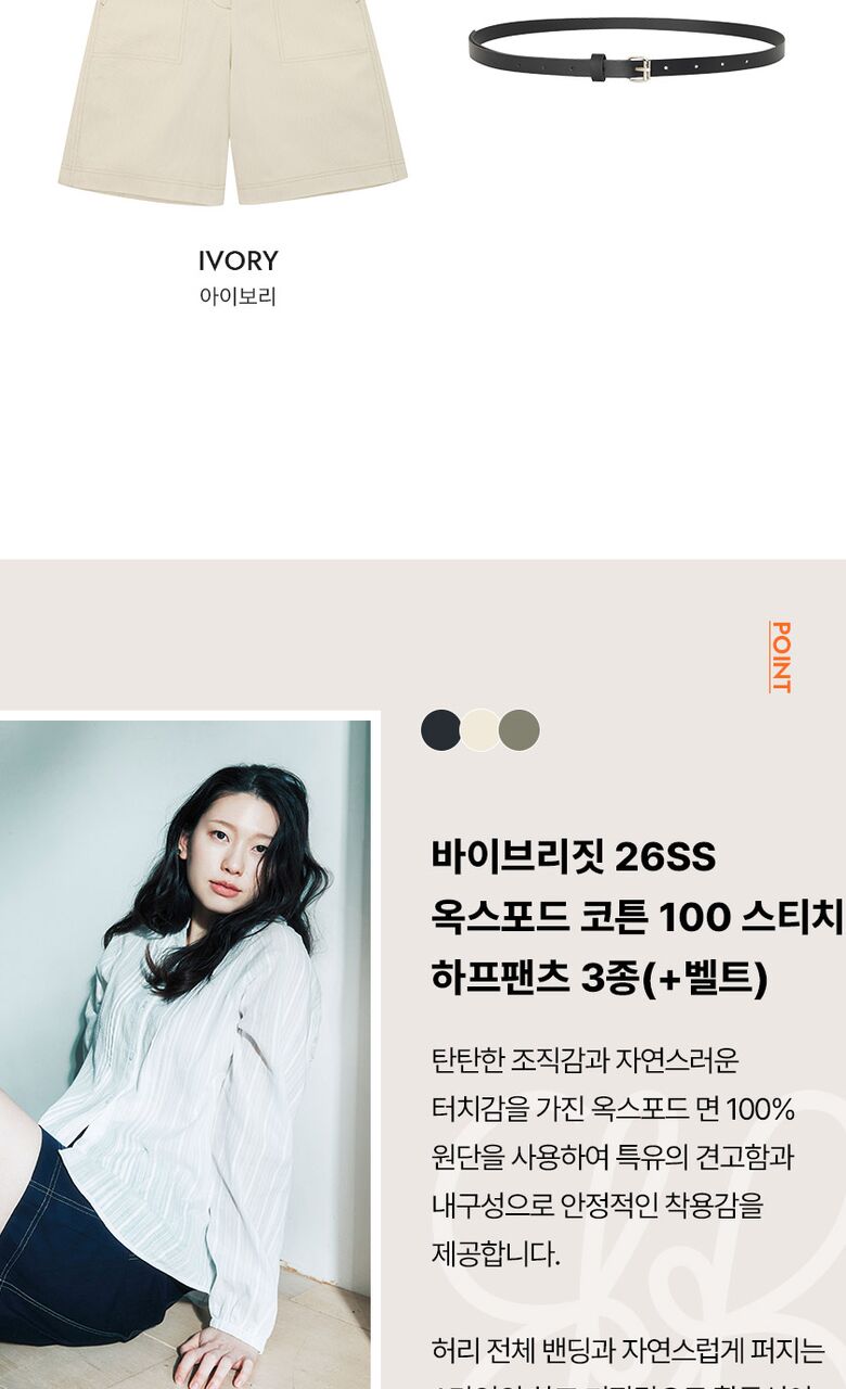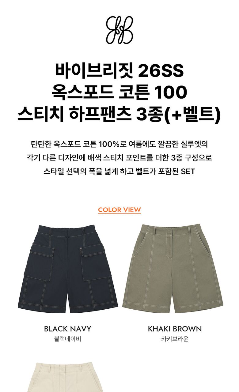 [바이브리짓]26SS 옥스포드 코튼 100 스티치 하프팬츠 3종(+벨트)