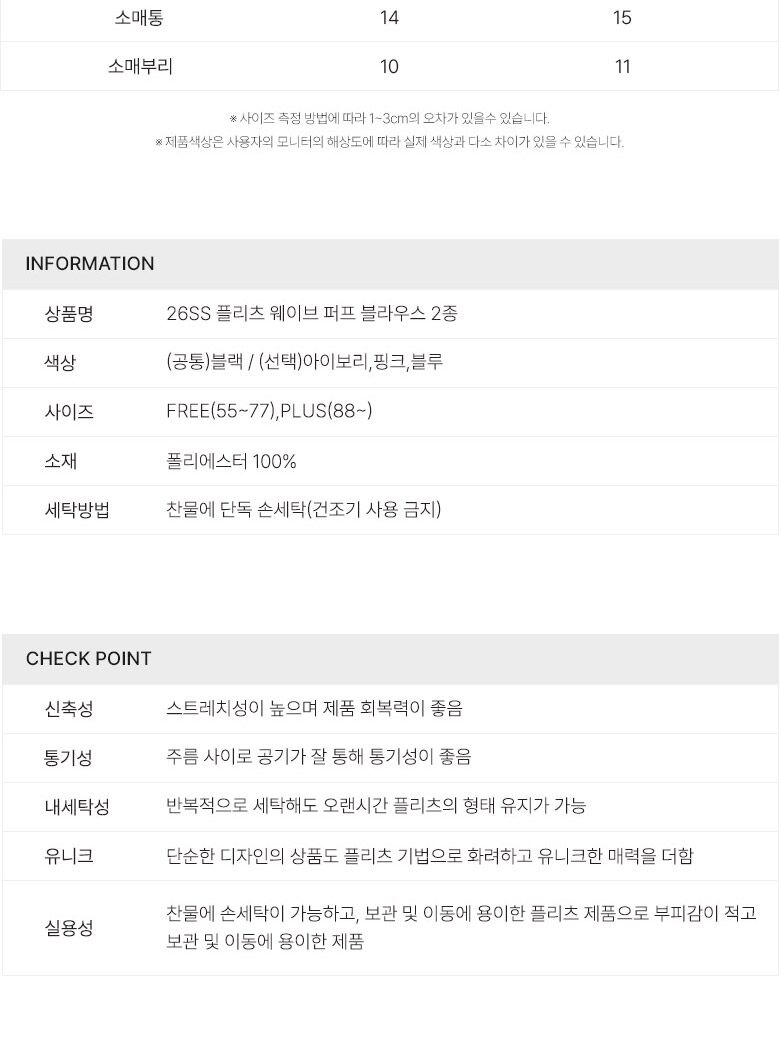 | 플리츠미블라우스 | FREE , PLUS | 2 |