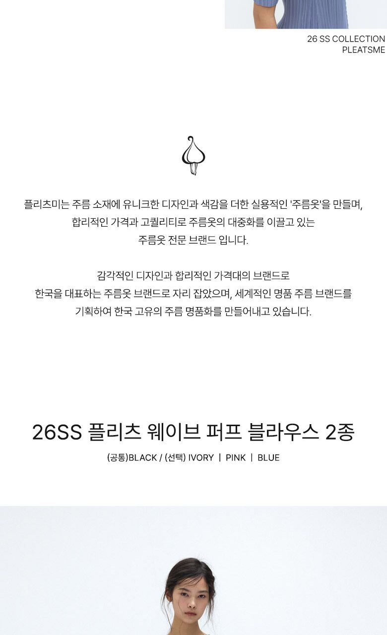 [플리츠미]26SS 플리츠 웨이브 퍼프 블라우스 2종