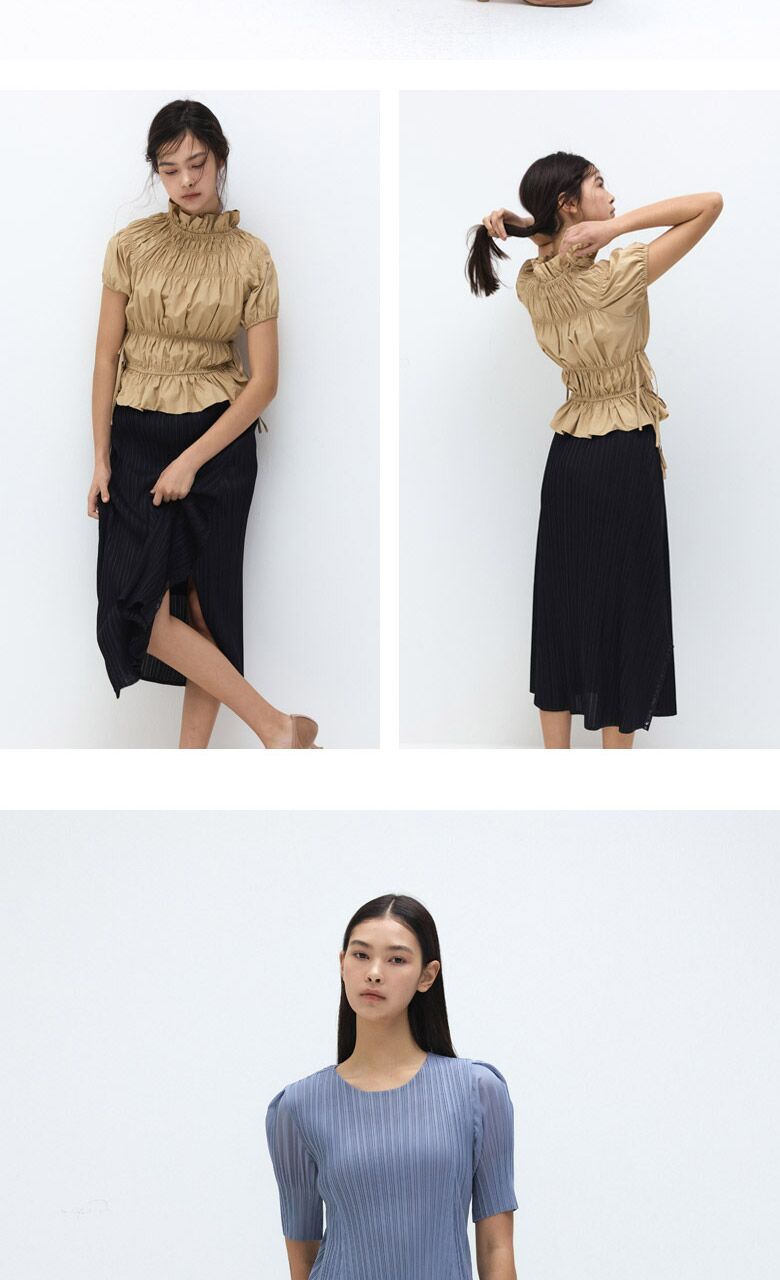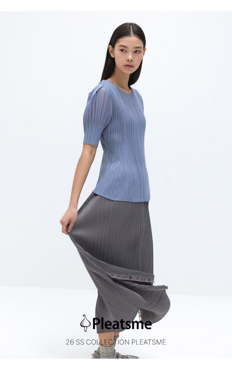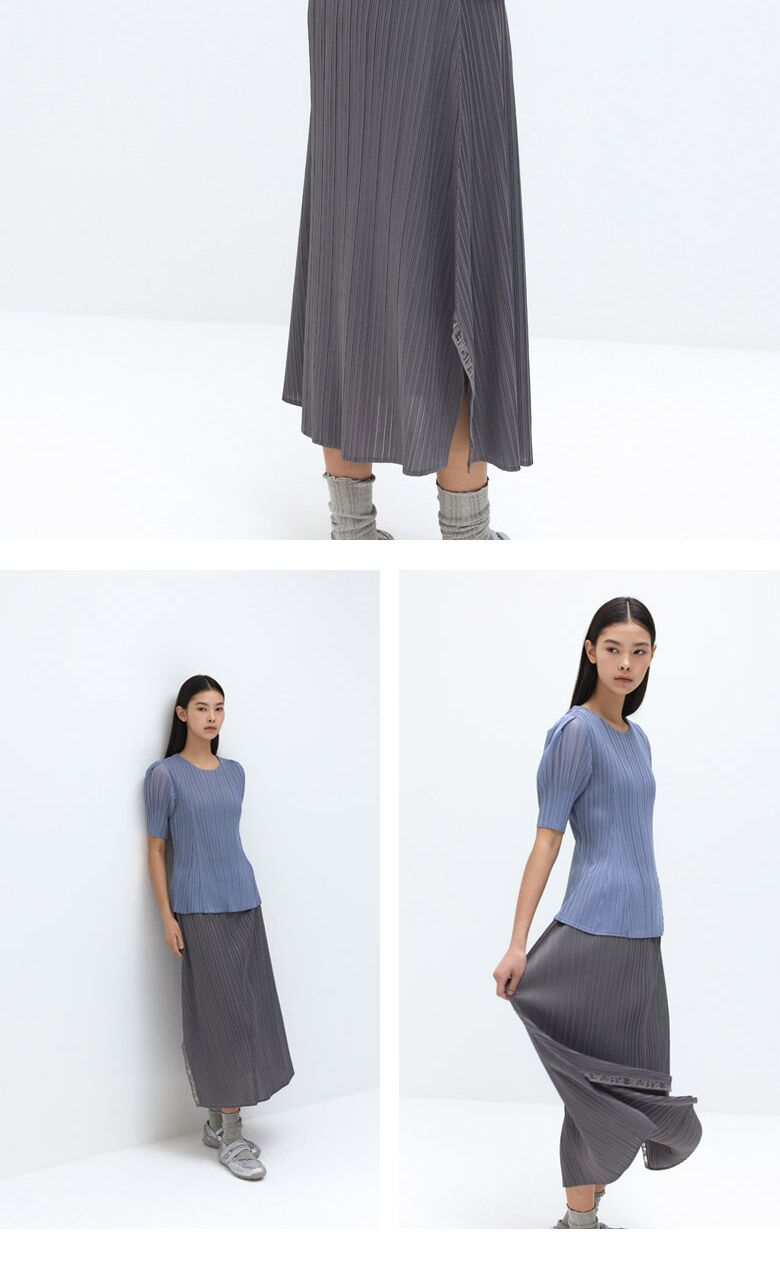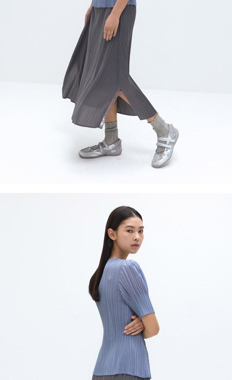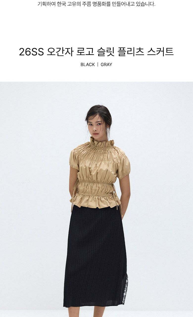 [플리츠미]26SS 오간자 로고 슬릿 플리츠 스커트