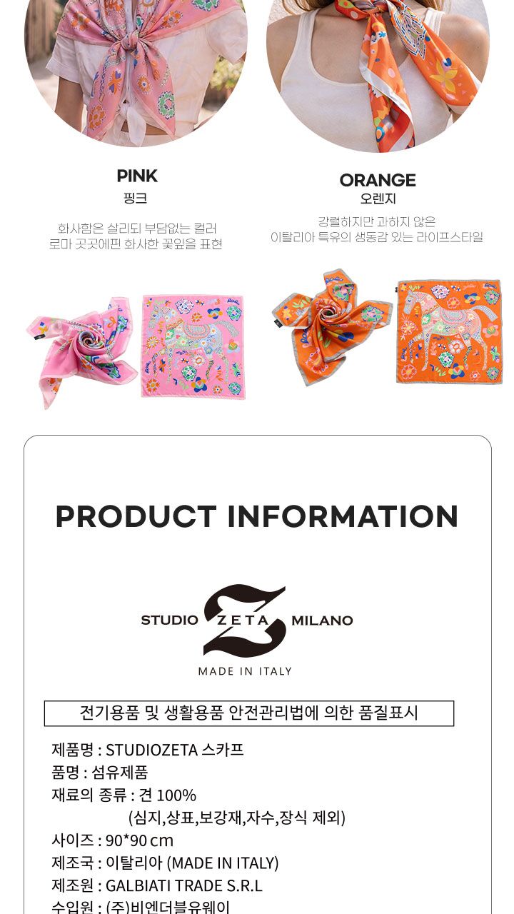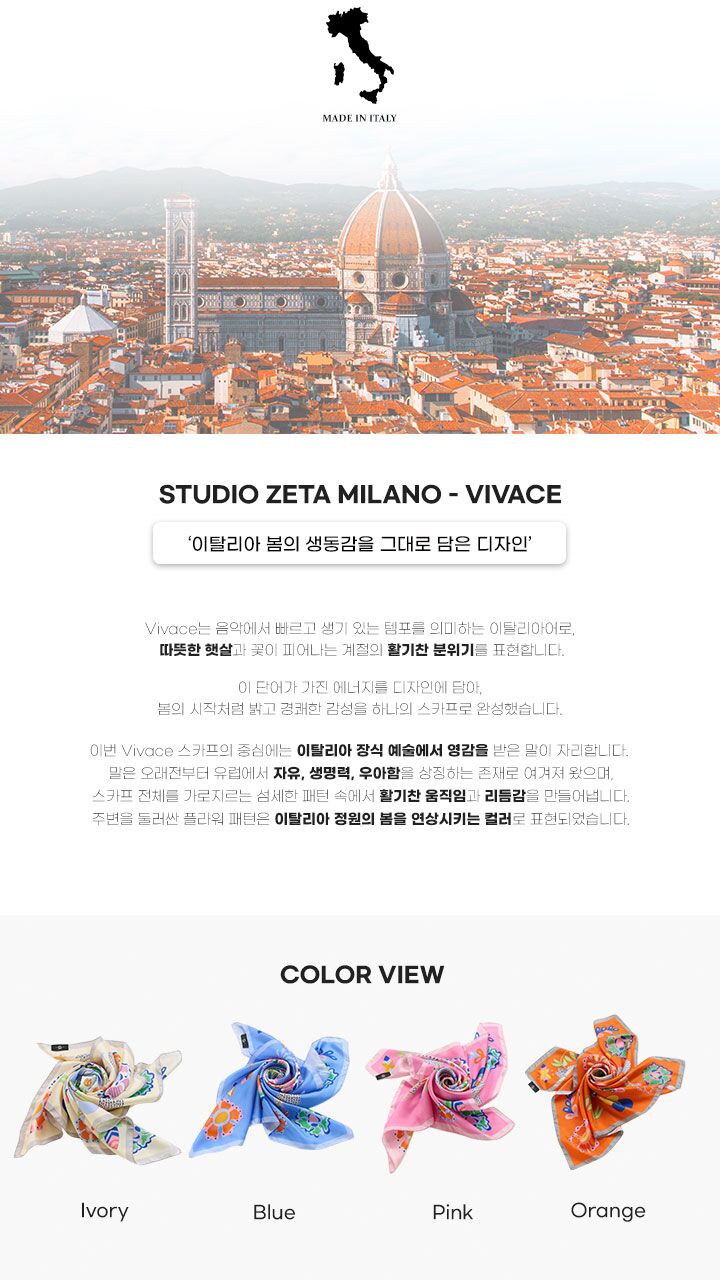 [이태리 직수입] 스튜디오제타 비바체(VIVACE) 실크 스카프