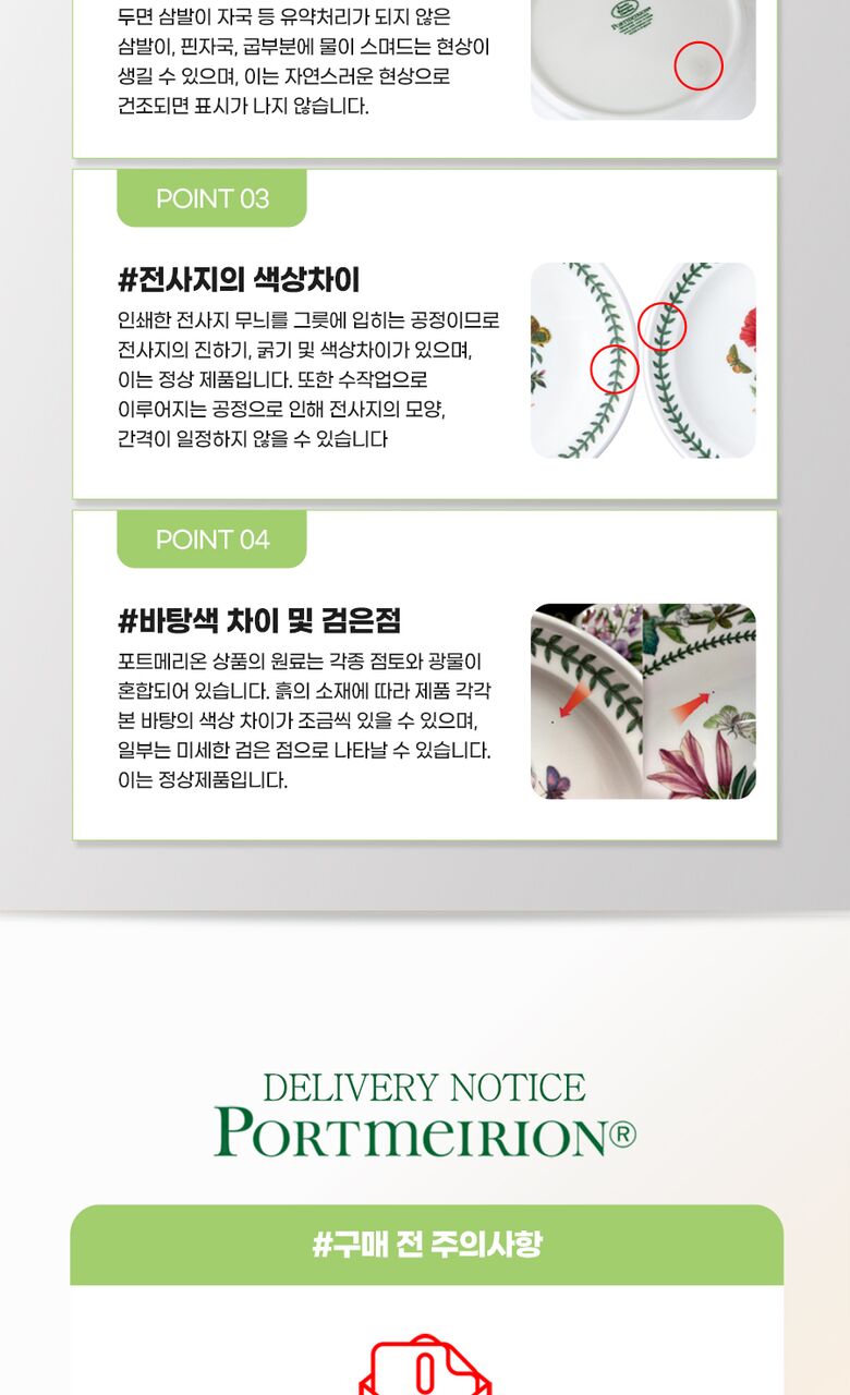 - 도자기 제품이기에 충격 및 갑작스러운 온도 변화로 인해 금이 가거나 파손될 수 있습니다.