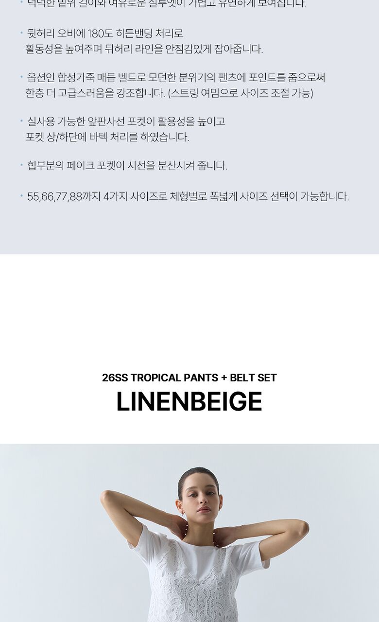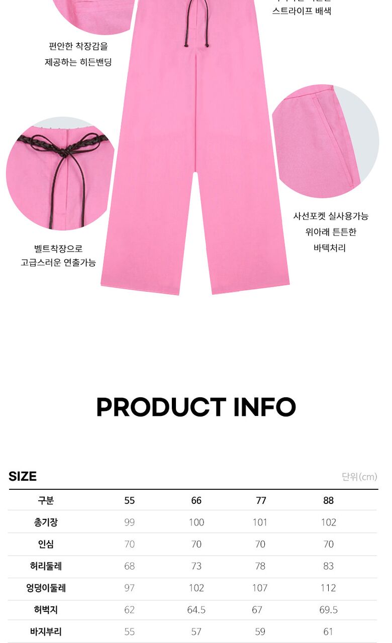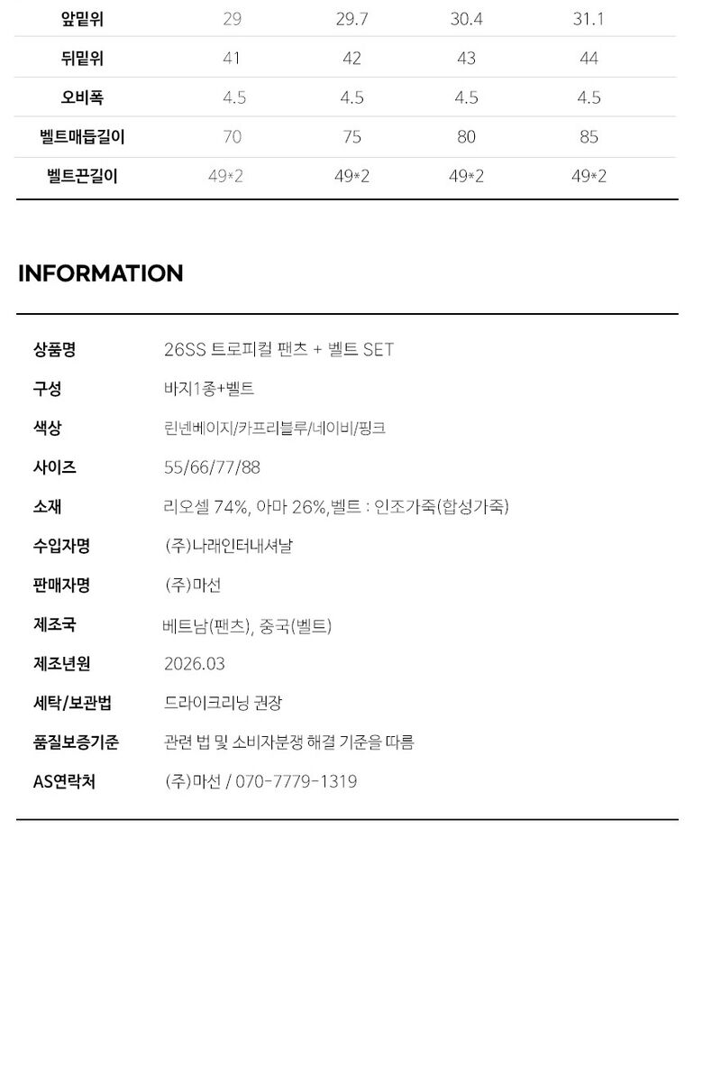 | 팬츠 1종+벨트 포함 | S(55),M(66),L(77),XL(88) | 2 |