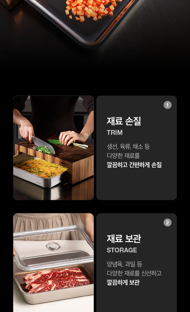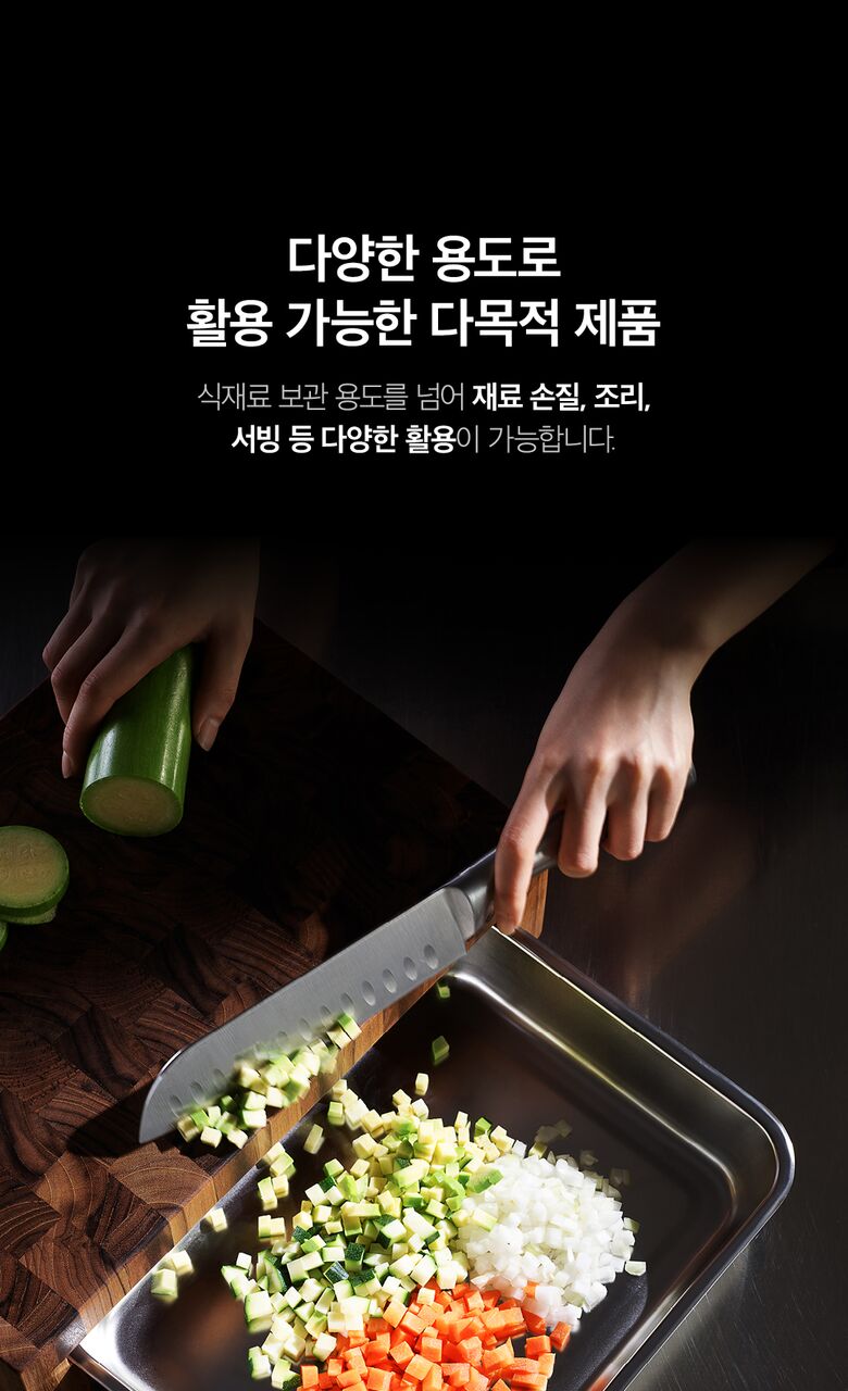 | 재질 | 도마 본체: 목재, 도마발: PVC, 스테인레스, 바퀜 밧드: 용기-스테인리스 스틸, 뚜껑-SAN, 고무제(실리콘) |