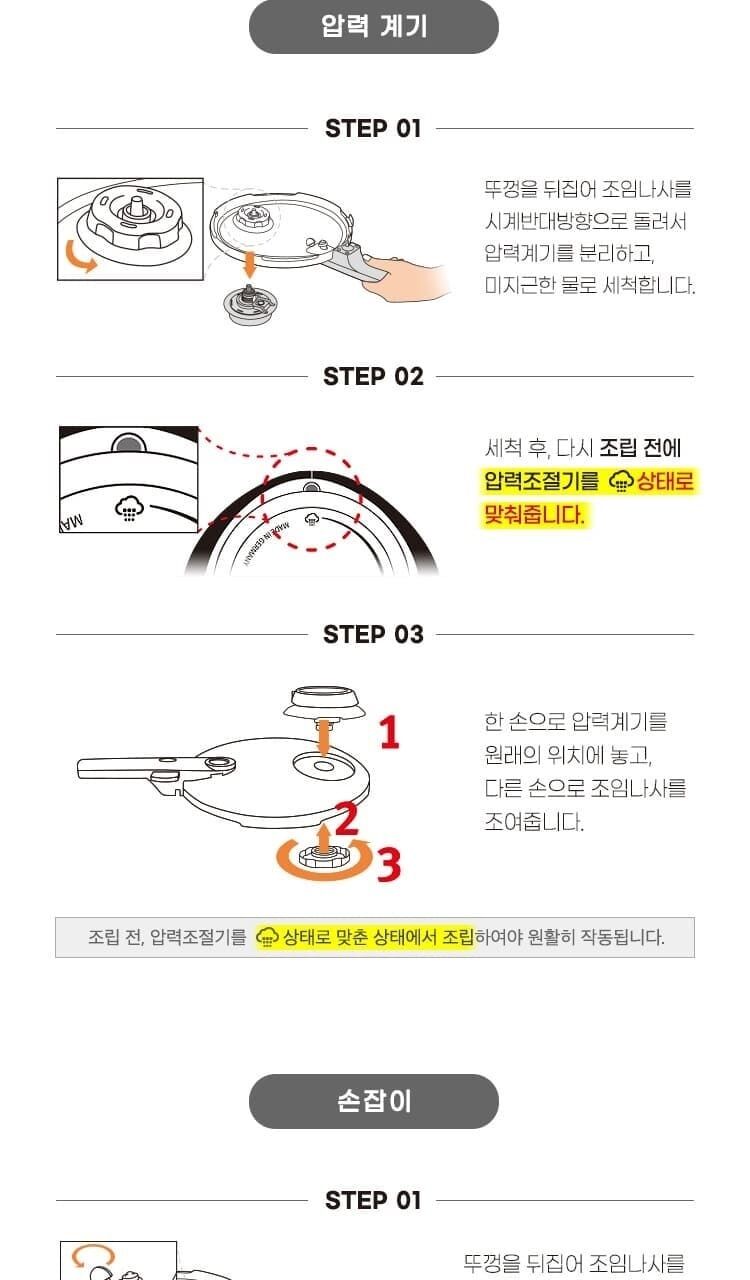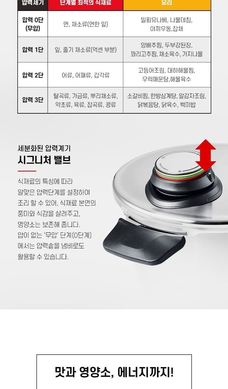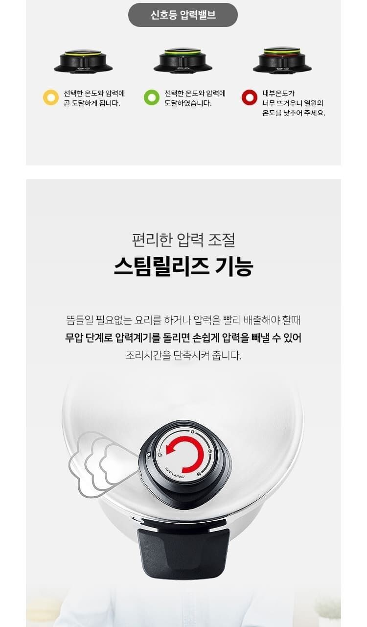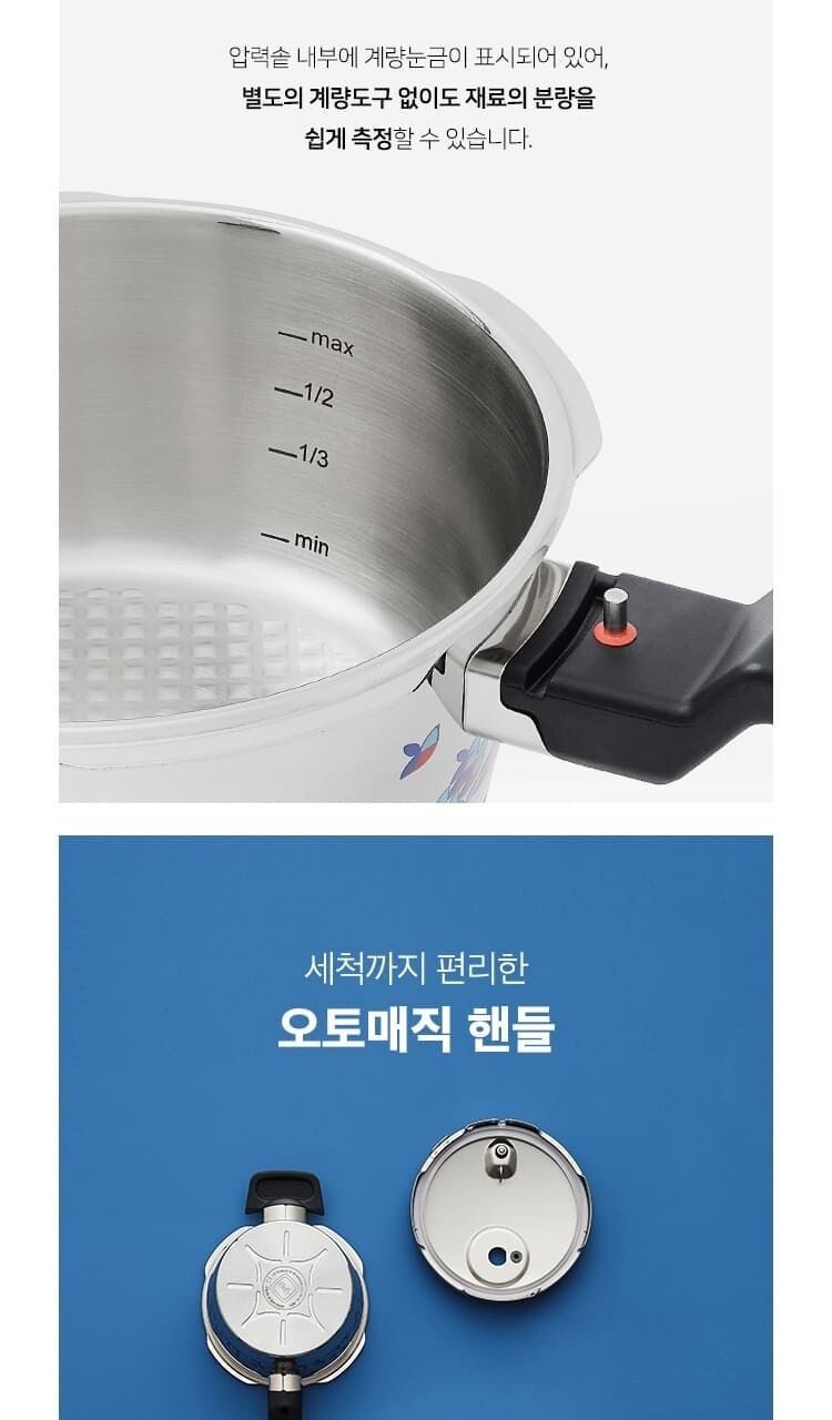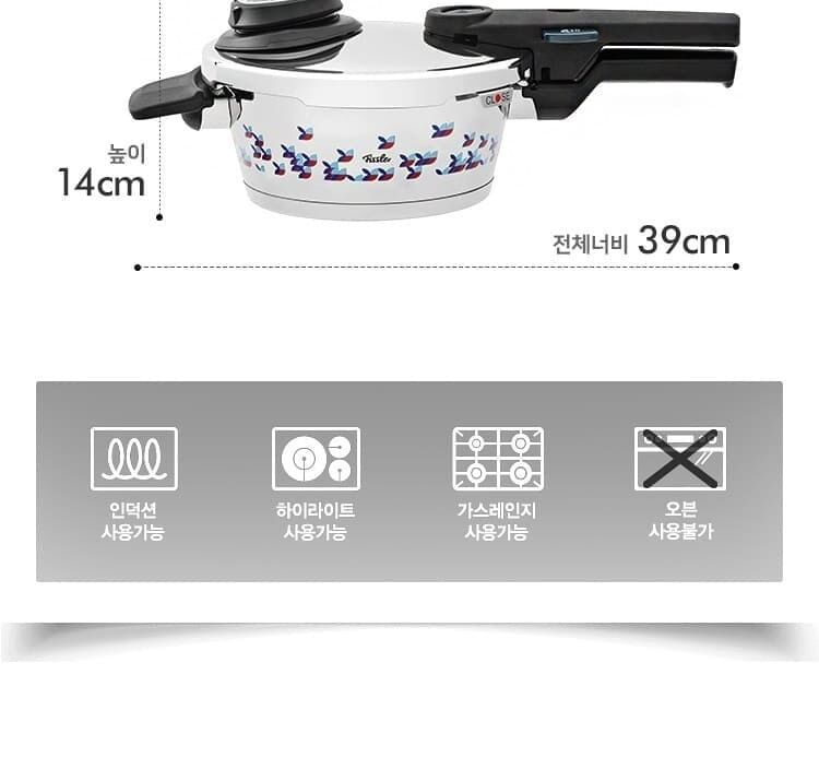 | 크기 | 압력솥(3인용) : 내경 18cm * 높이 14cm, 전체 너비 39cm |