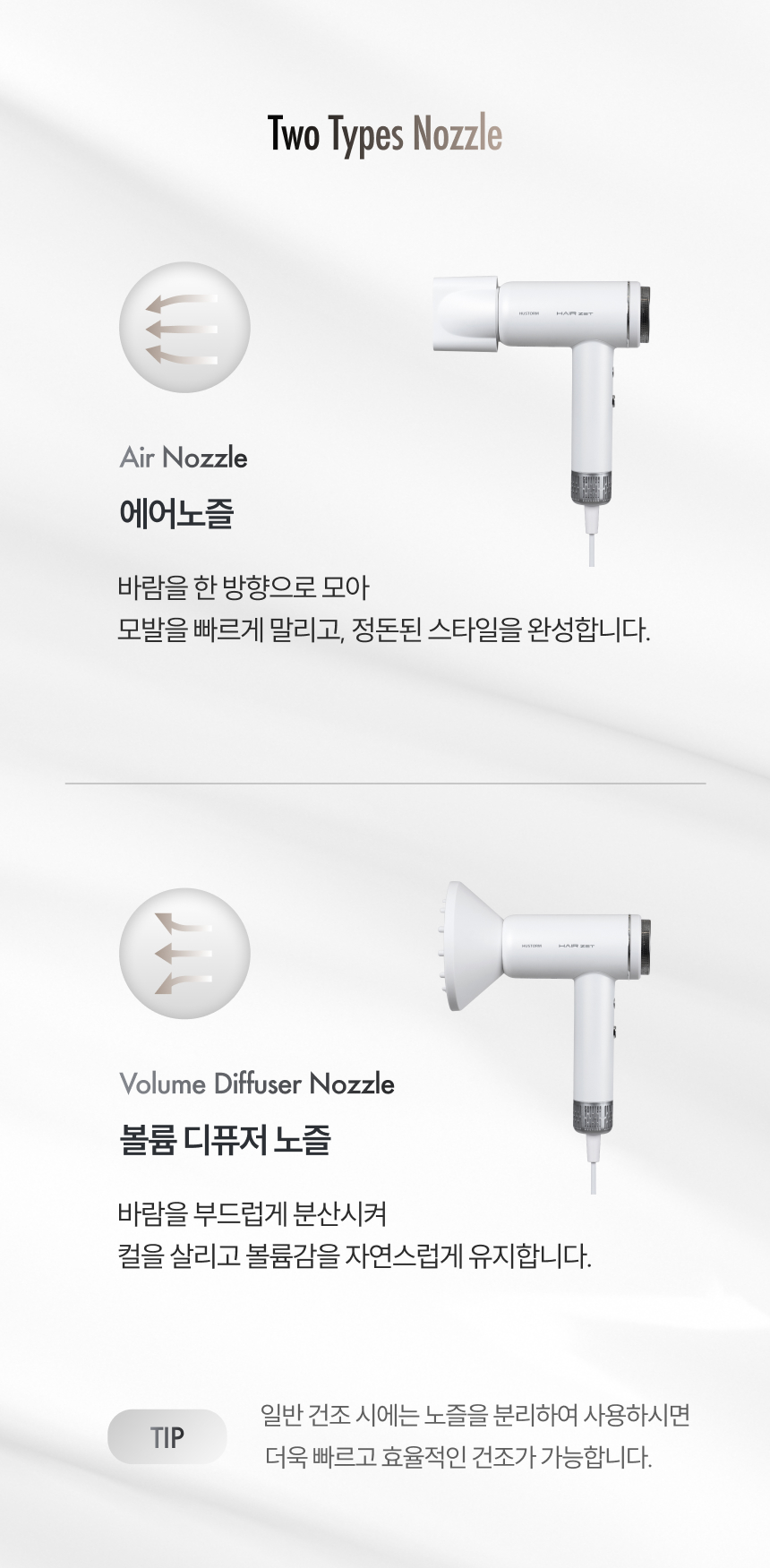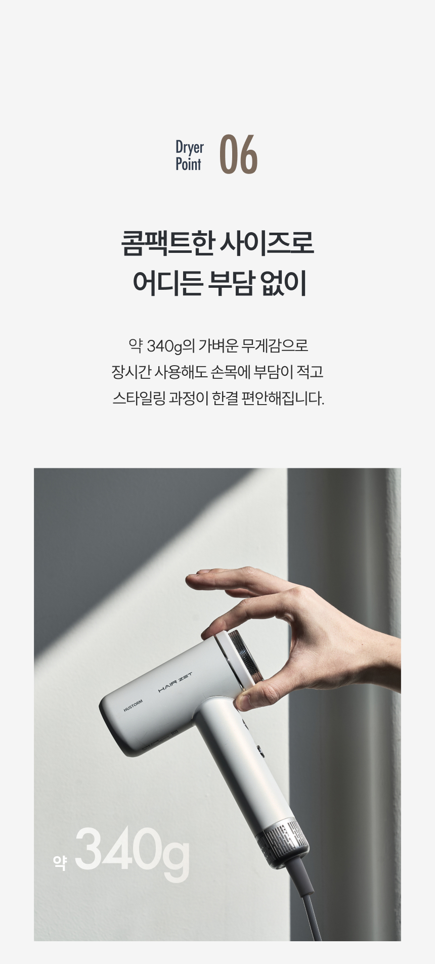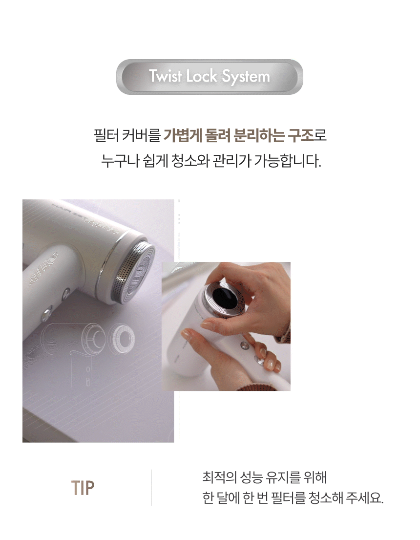 | 크기, 용량, 형태 | 제품크기: 133 × 203 × 60 (mm) / 제품중량: 약 340g (노즐, 코드 제외) |