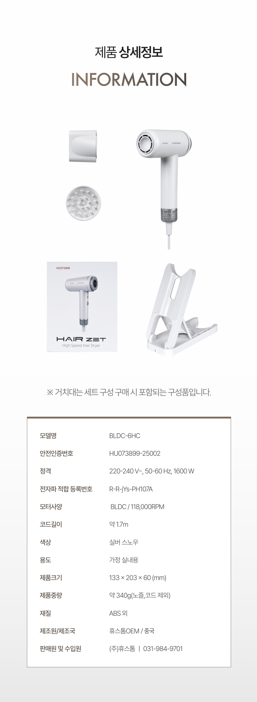 | 품명 / 모델명 | [휴스톰] 헤어제트 BLDC 헤어 드라이기(BLDC-6HC) |