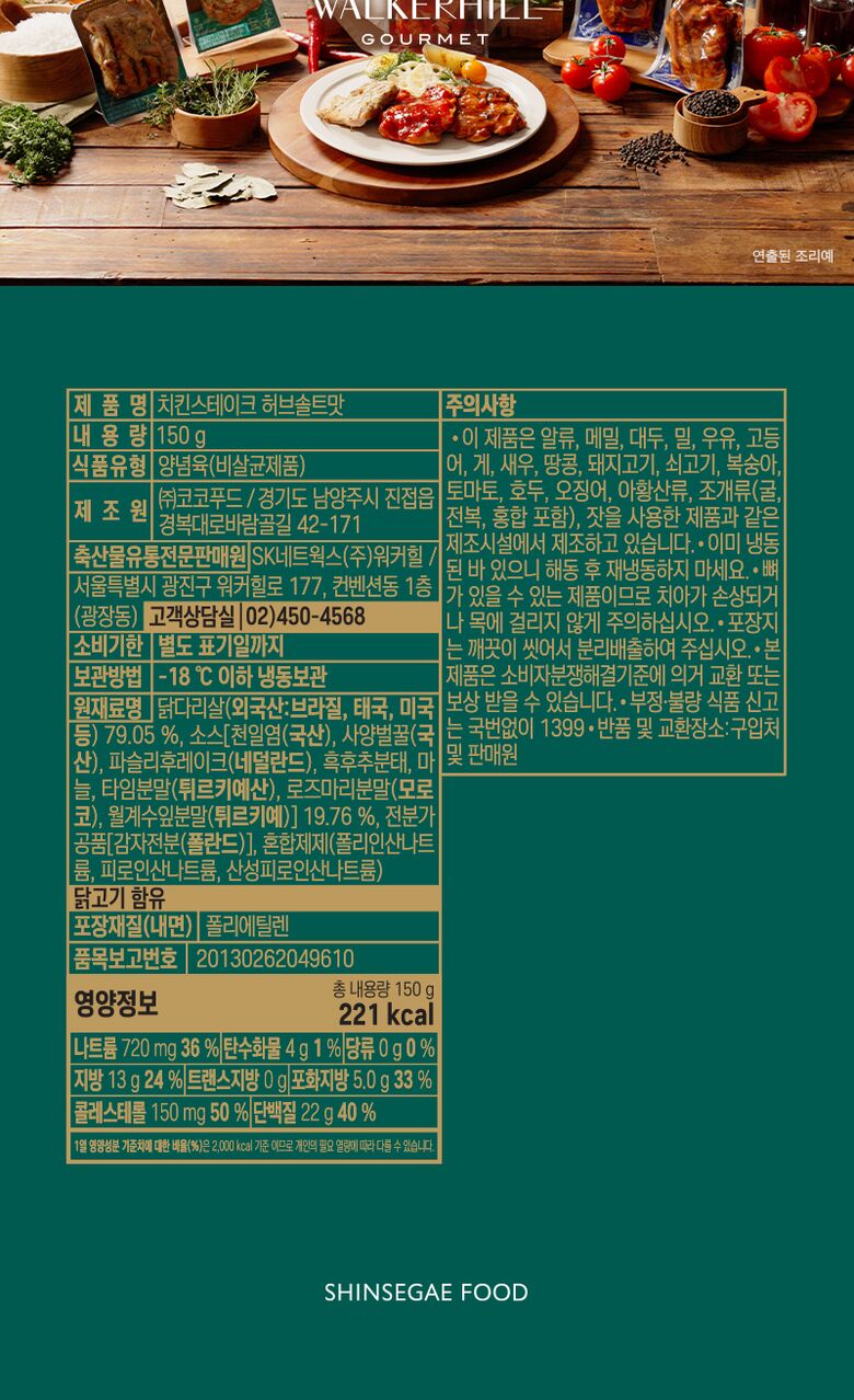 | 워커힐 고메 치킨스테이크 허브솔트맛 | 150g | 6 |