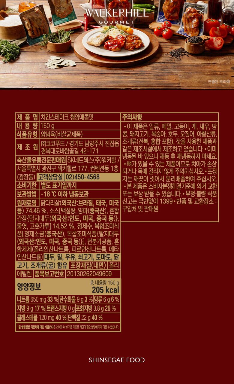 | 워커힐 고메 치킨스테이크 특제매콤(청양매콤)맛 | 150g | 5 |