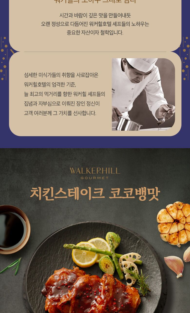 | 제품명 | 워커힐 고메 치킨 스테이크 3종 16팩 |