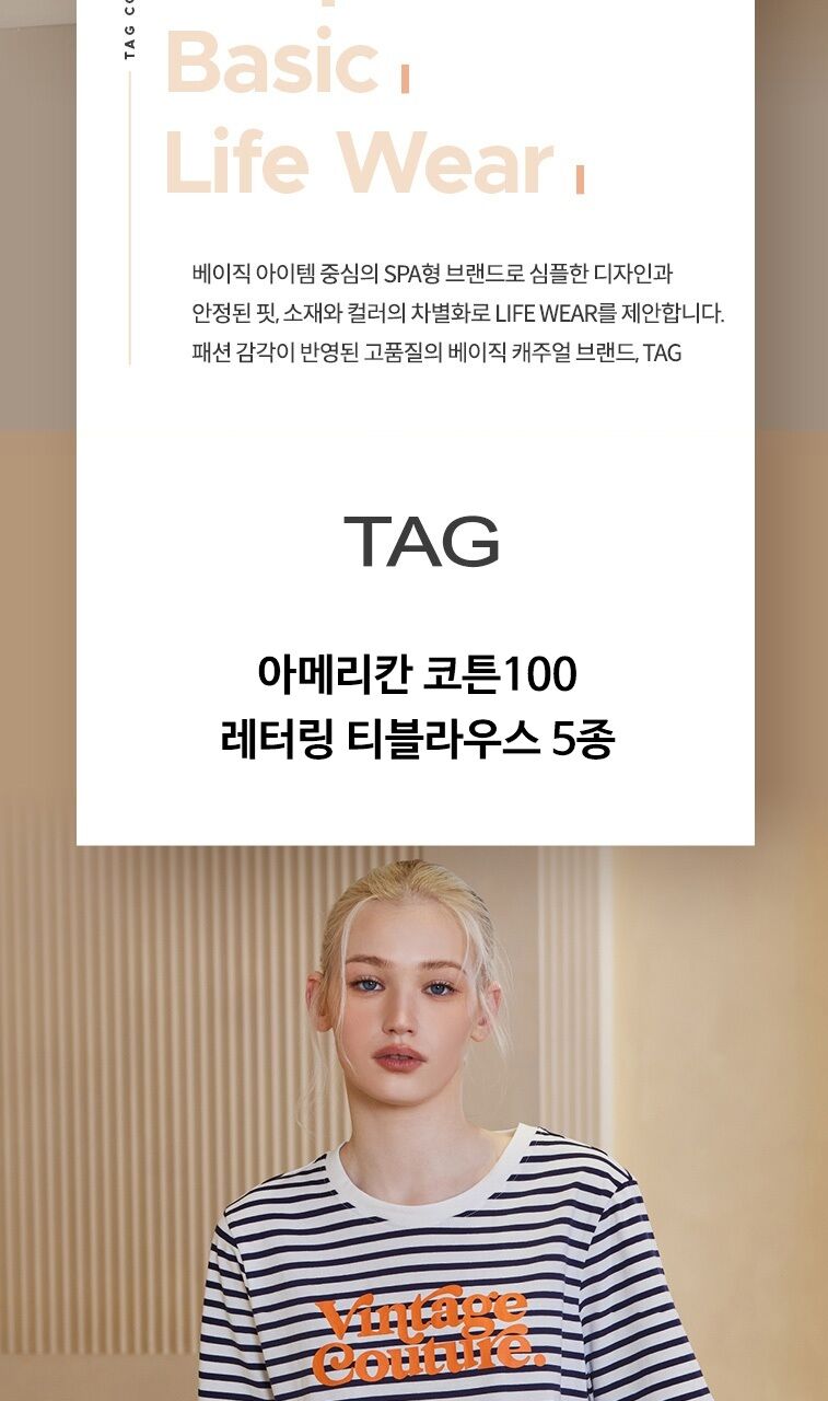 [태그]아메리칸 코튼100 레터링 티블라우스 5종