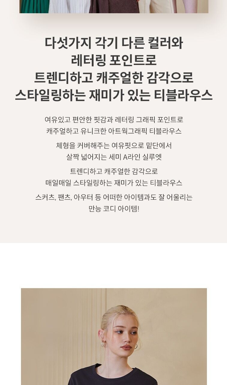 아메리칸 코튼100 레터링 티블라우스 5종