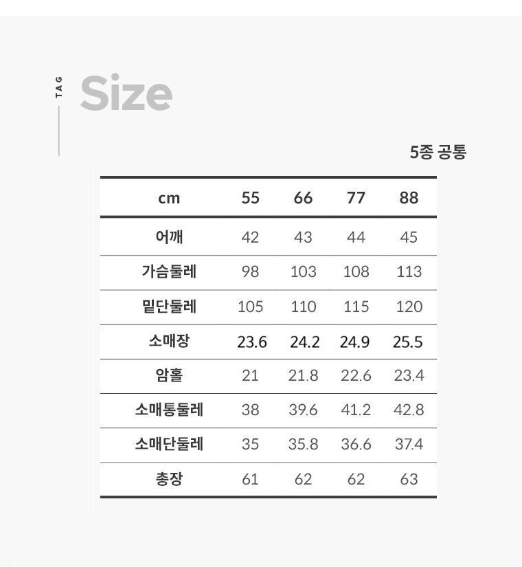 | 티셔츠 | 55-88 | 5 |