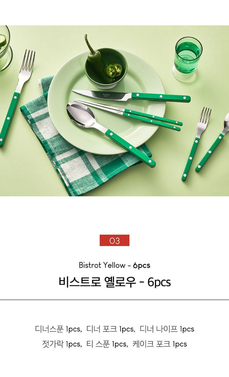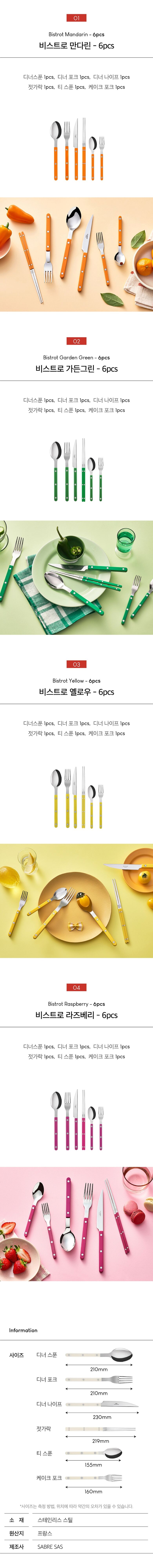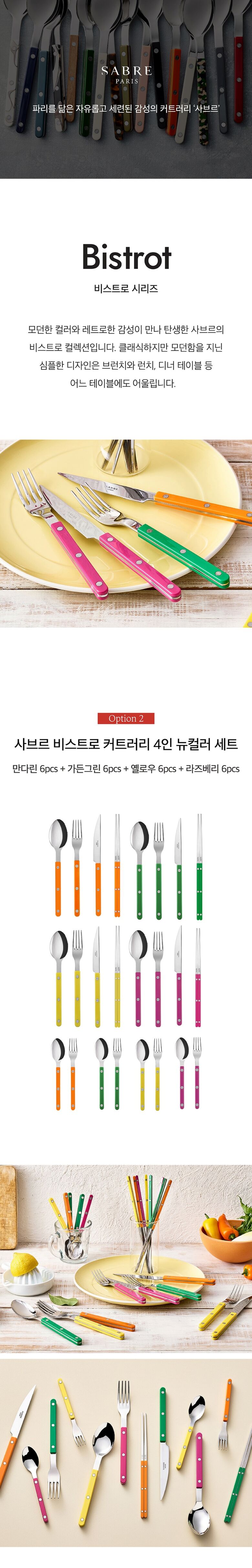 | 품명 / 모델명 | 사브르 비스트로 커트러리 4인조 (가든그린/라즈베리/만다린/옐로우) |