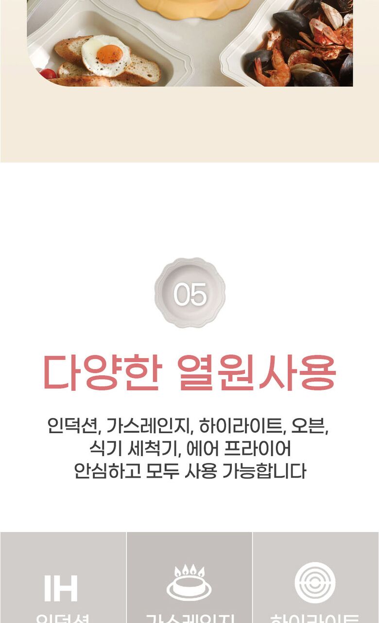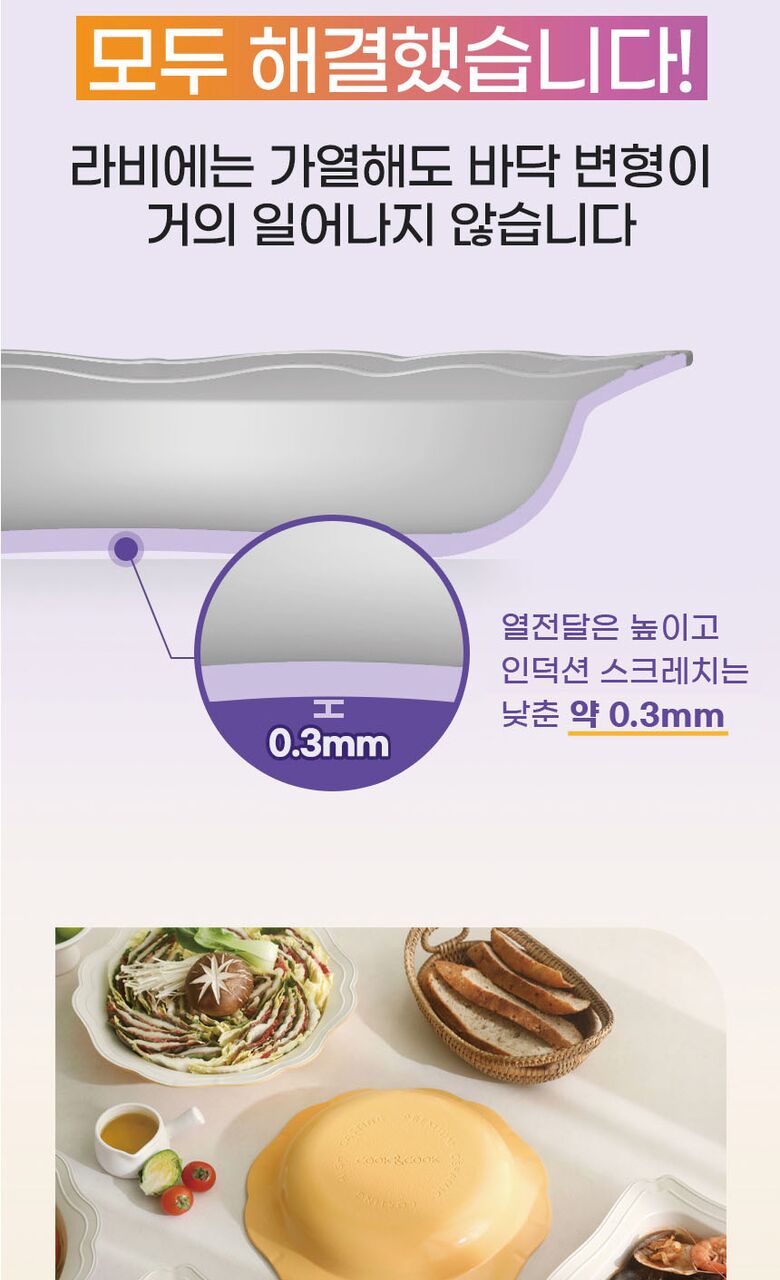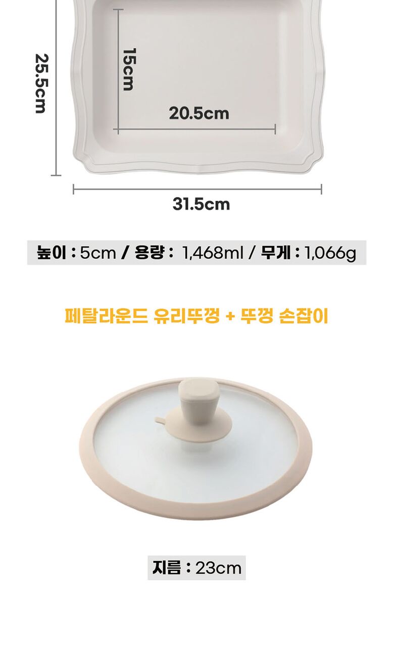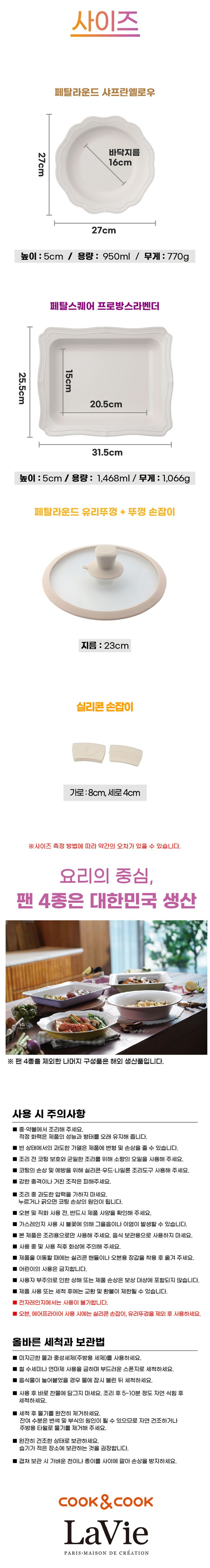 | 구성품 | 페탈 라운드(옐로우)+페탈 스퀘어(라벤더)+유리뚜껑 (원형+노브)+실리콘 손잡이 |