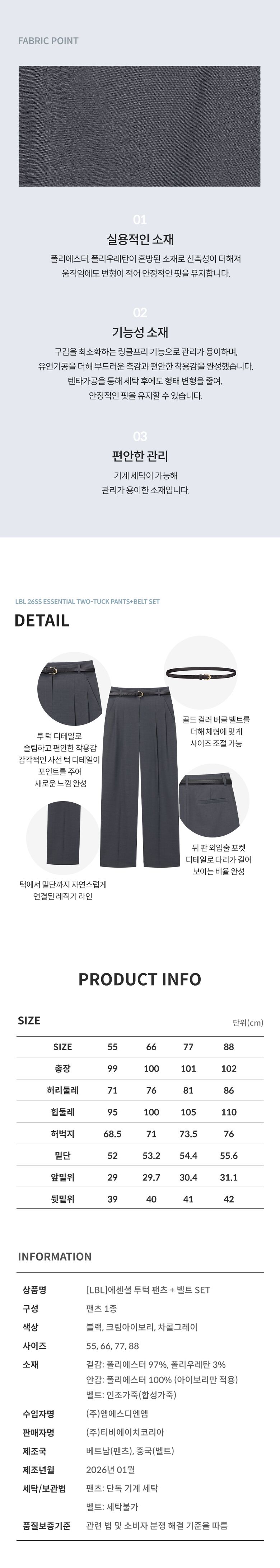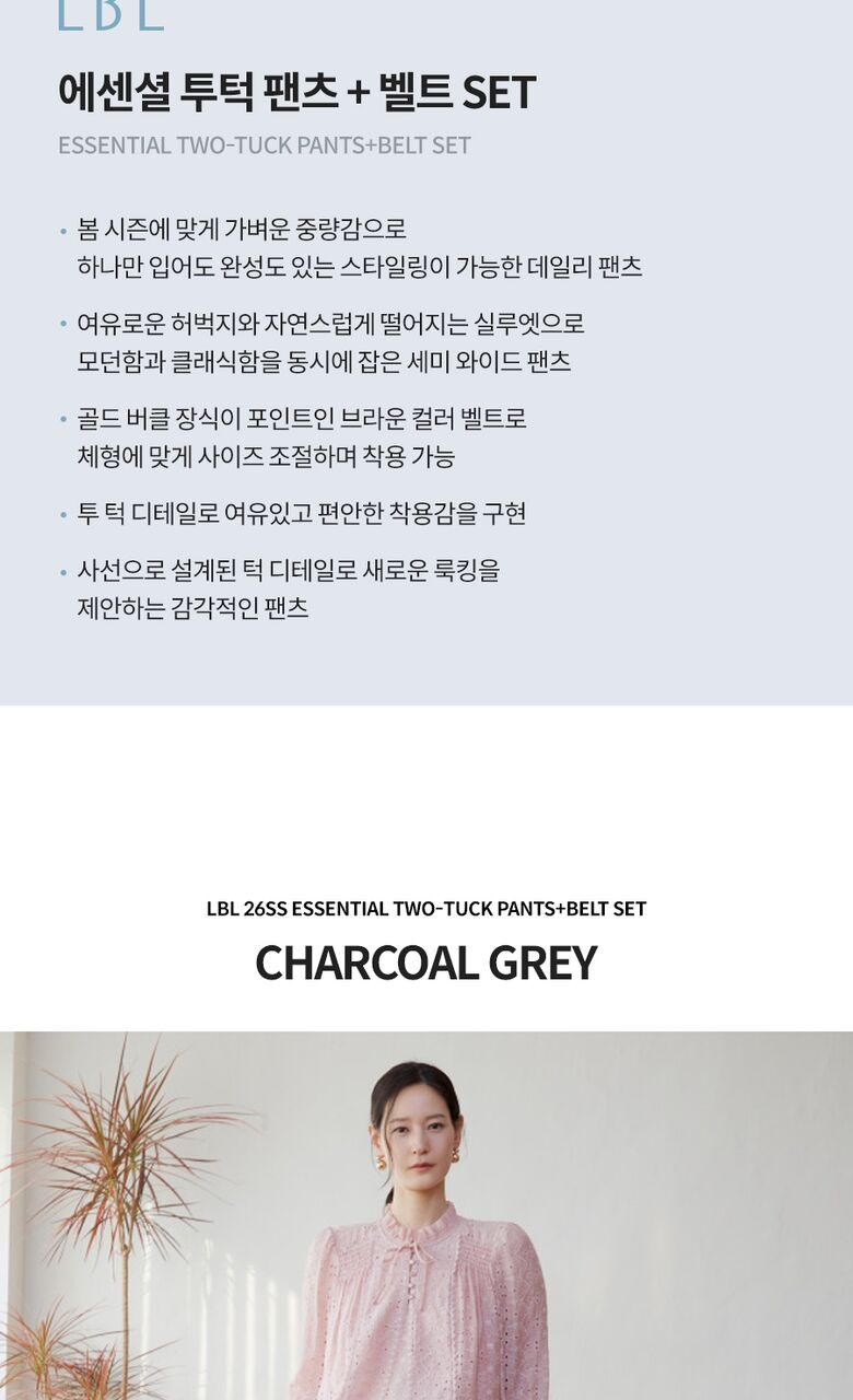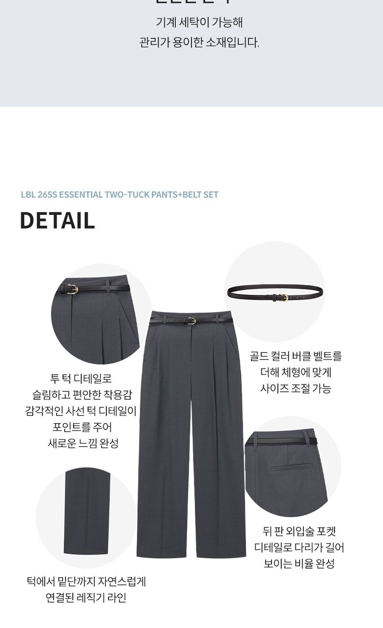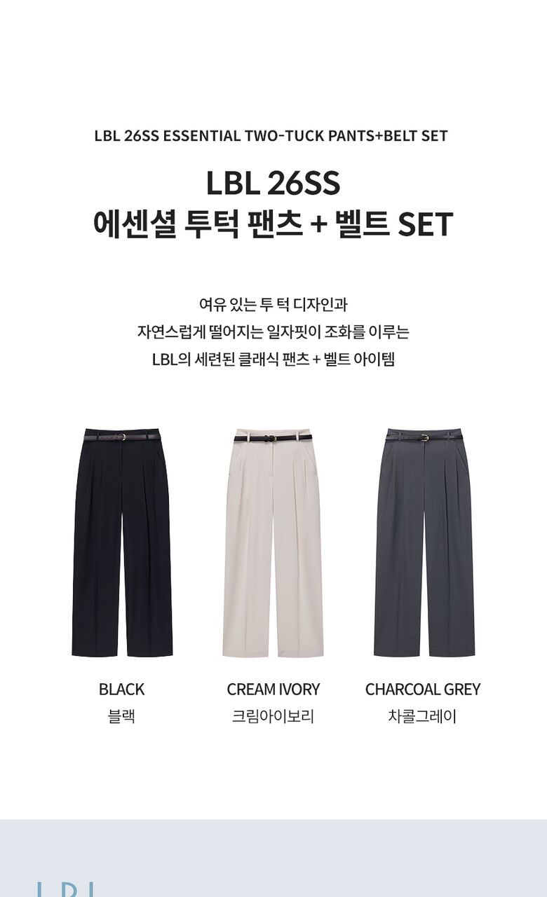 [LBL]○(런칭가 59,900원)26SS 에센셜 투턱 팬츠+벨트 SET