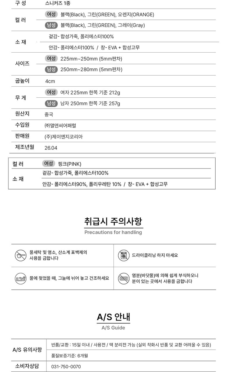 | 색상 | 블랙,그린,핑크,오렌지 |