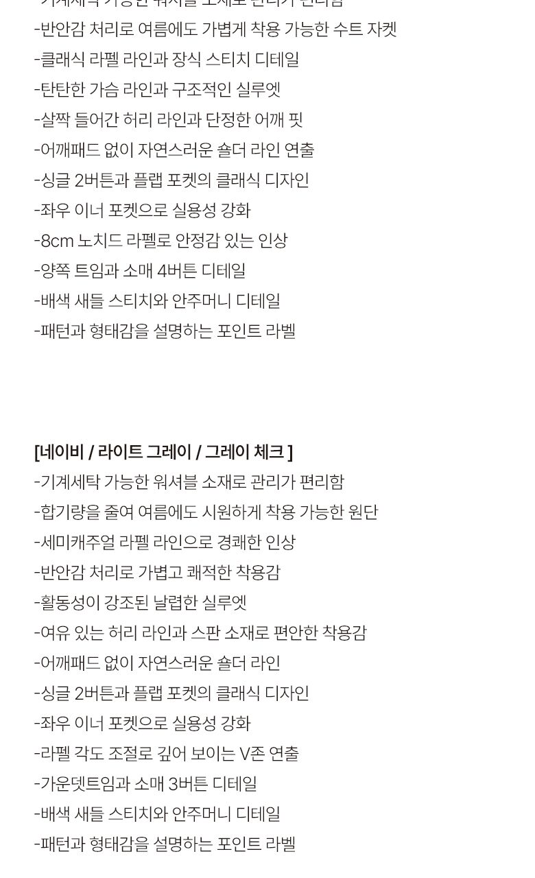 | 색상 | [공통] 블랙 [선택] 네이비 / 라이트그레이 / 그레이체크 |