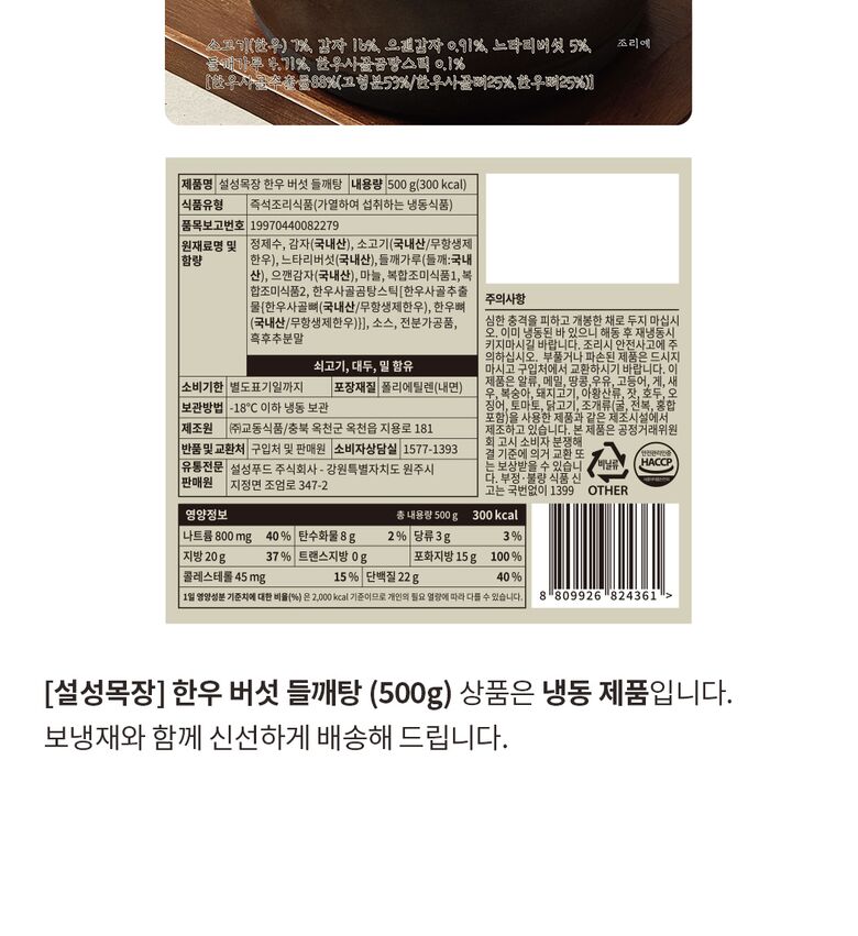 | 설성목장 한우 버섯 들깨탕 | 500g | 8 |