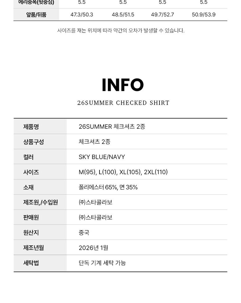| 셔츠 | M(95) / L(100) / XL(105) / 2XL(110) | 2 |