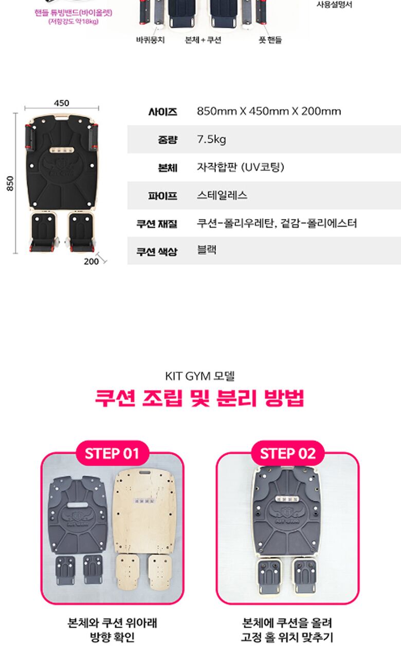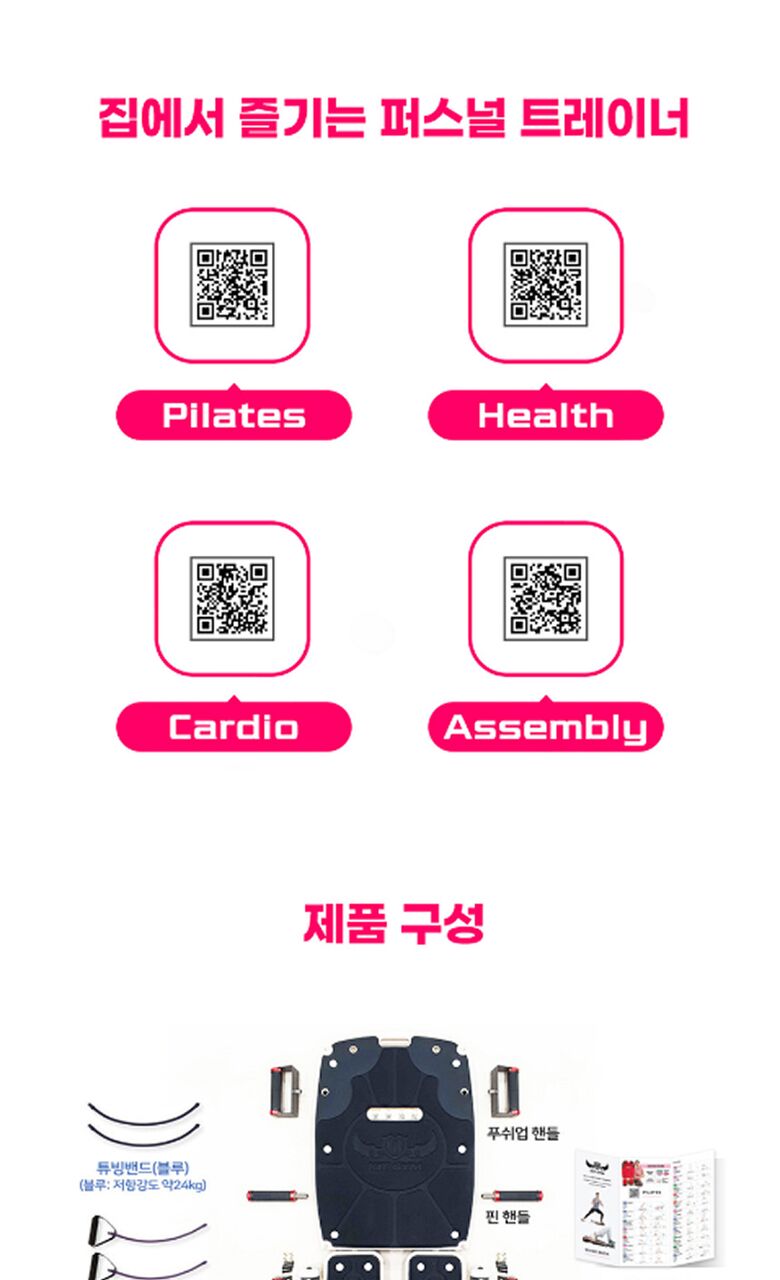 | 제품구성 | 메인보드,푸시보드,안전쿠션,손잡이,라텍스밴드,스텐쇼바,무소음우뢰탄바퀴 |