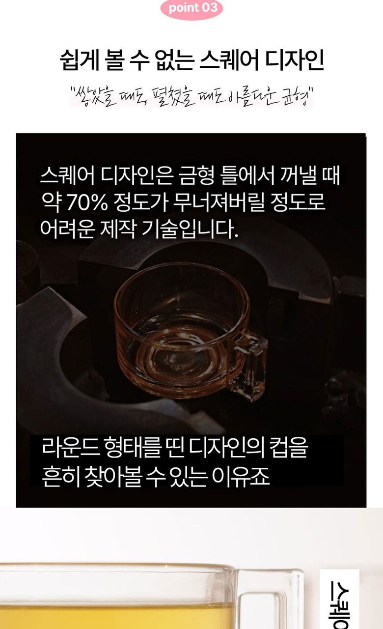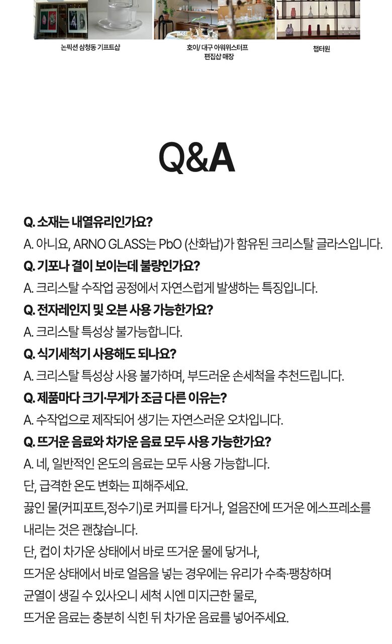 유리가 수축/팽창하며 균열이 생길 수 있으니 세척 시엔 미지근한 물로, 뜨거운 음료는 충분히식힌 뒤