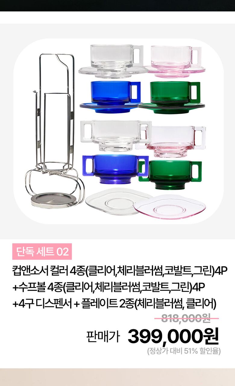 | 컵앤소서 세트(클리어/코발트/그린/체리블라썸) | 90*60mm/ 200ml, 470g | 1 |