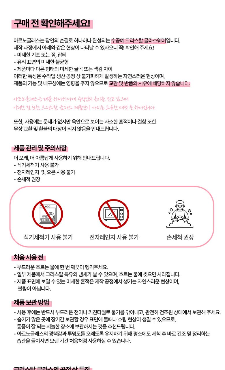 일부 제품에서 크리스탈 특유의 냄새가 날 수 있으며, 흐르는 물에 씻으면 사라집니다.)