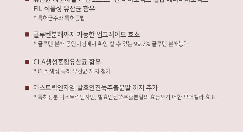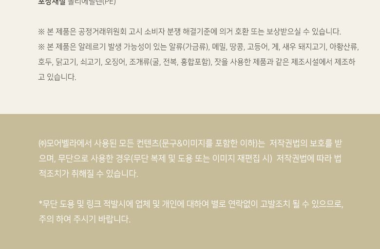 | 소비자안전을 위한 주의사항 | 특이체질, 알레르기 체질의 경우 성분을 확인하시고 섭취하십시오. 소비기한을 확인하시기 바라며, 섭취량 및 섭취방법을 준수하시기 바랍니다. 제품개봉 또는 섭취 시 포장재에 의해 상처를 입을 수 있으므로 주의하십시오. |