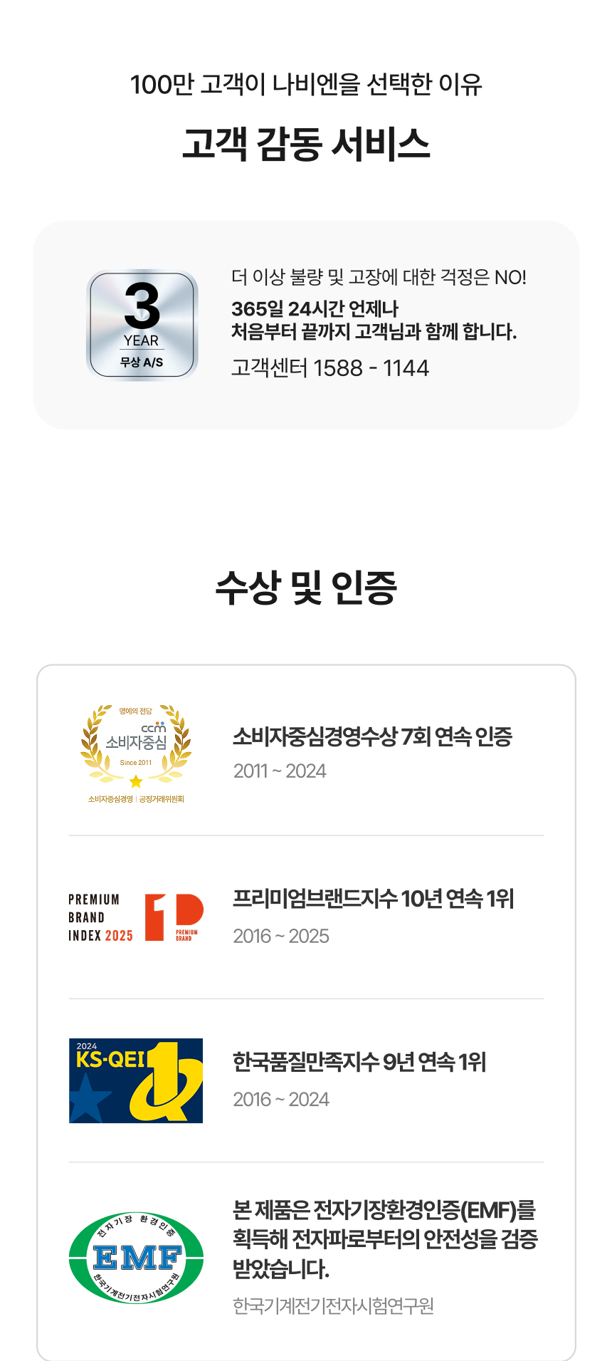 | 품질보증기준 | 3년 무상 품질 보증 |