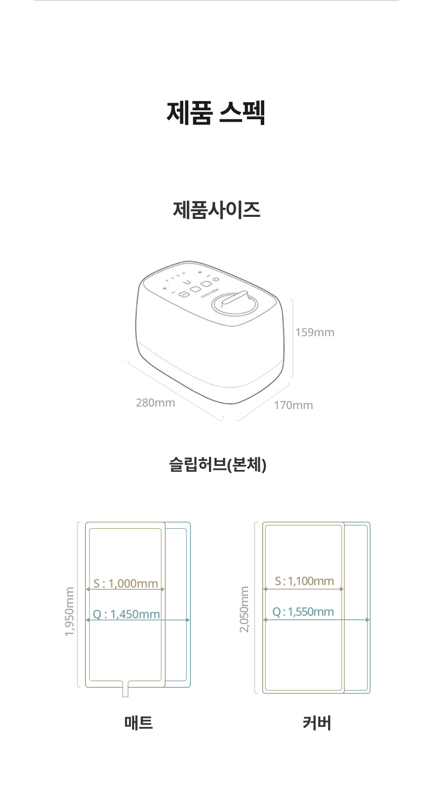 | 크기, 용량, 형태 | 퀸 매트 1,450 * 1,950 mm 커버 1,550 * 2,050 mm |